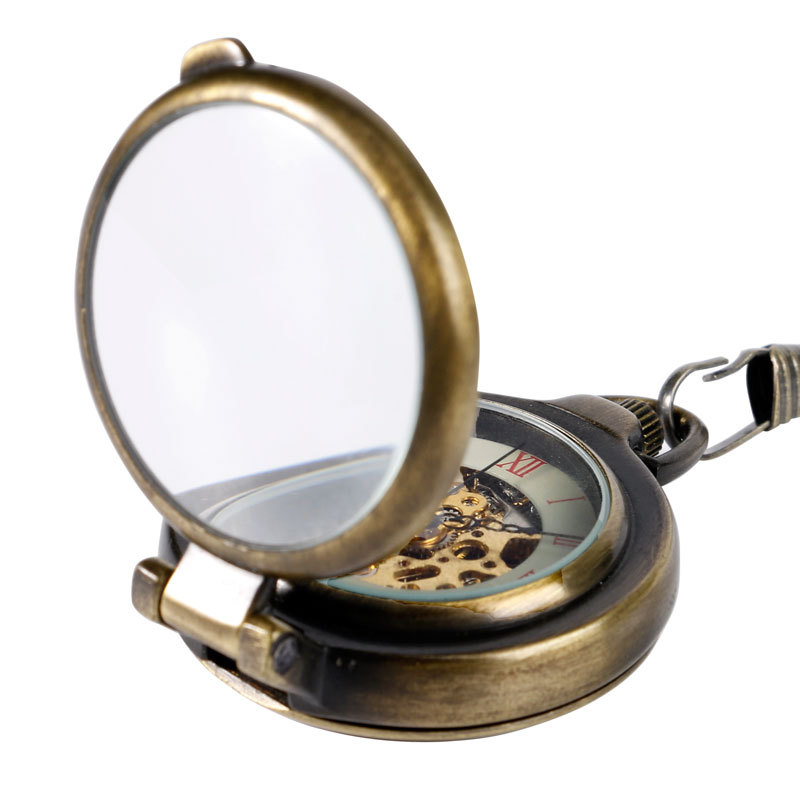 Retro Mechanical Pocket Watch Hand Wind Special Design Roman Number Half Hunter