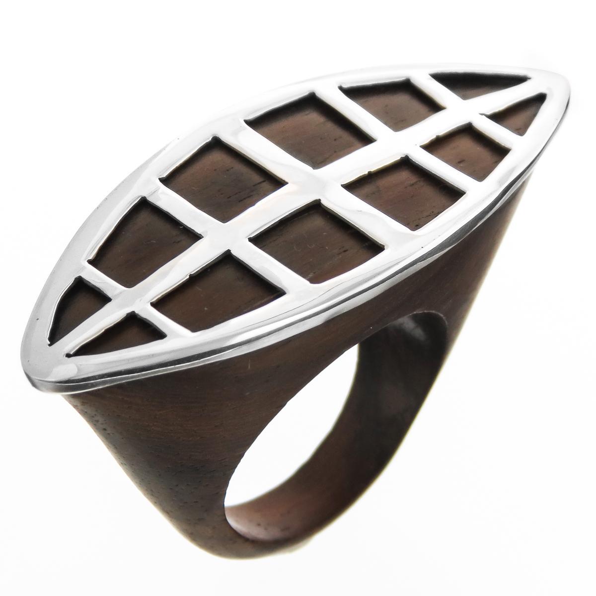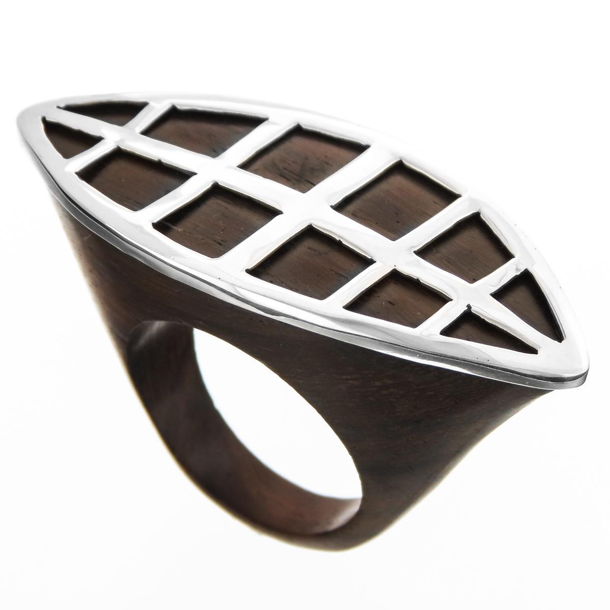 Dark Wood Eye Shape 925 Sterling Silver Ring