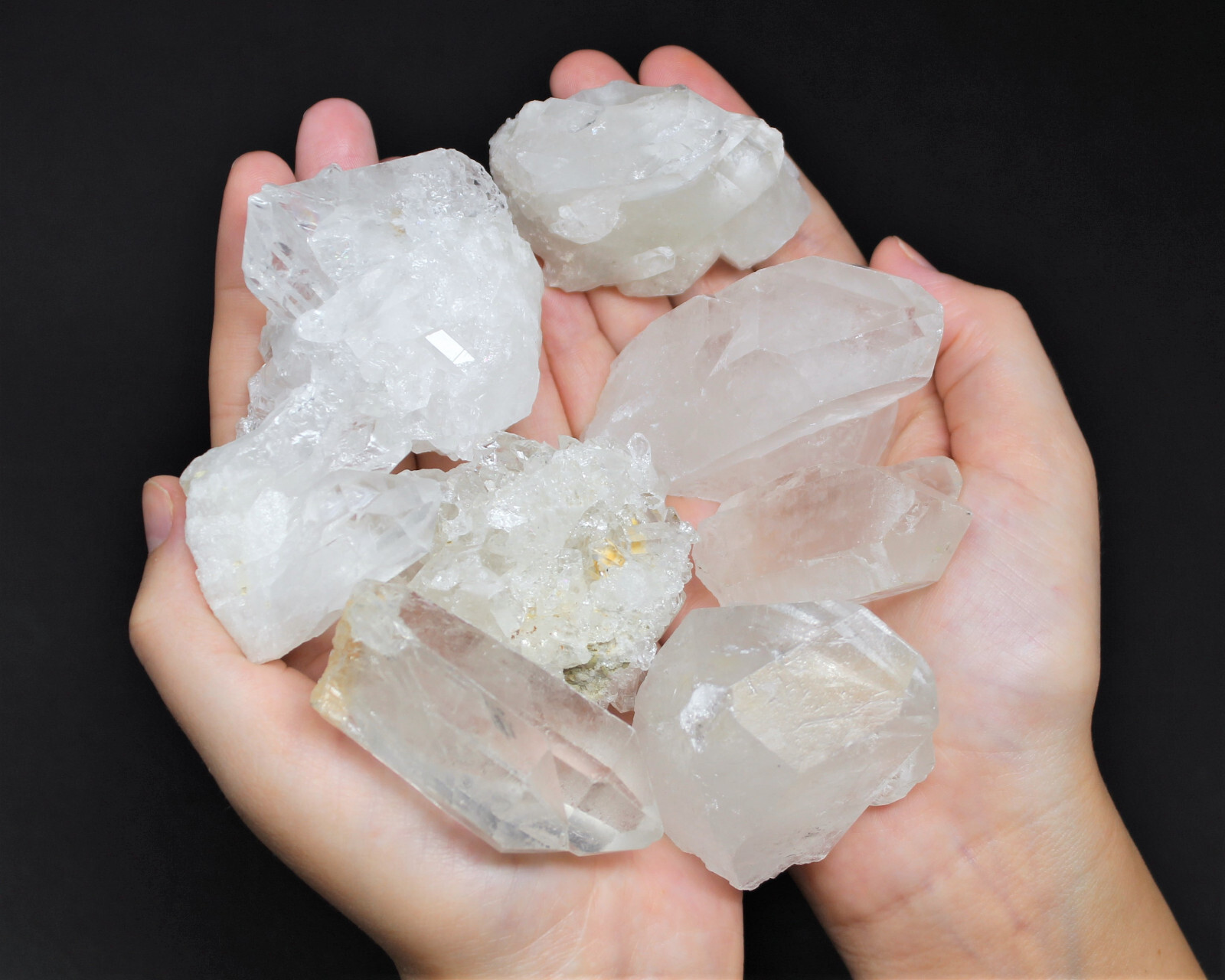 • Natural Clear Quartz Smoky Quartz Crystal Clusters 8-12 Piece Box Lot