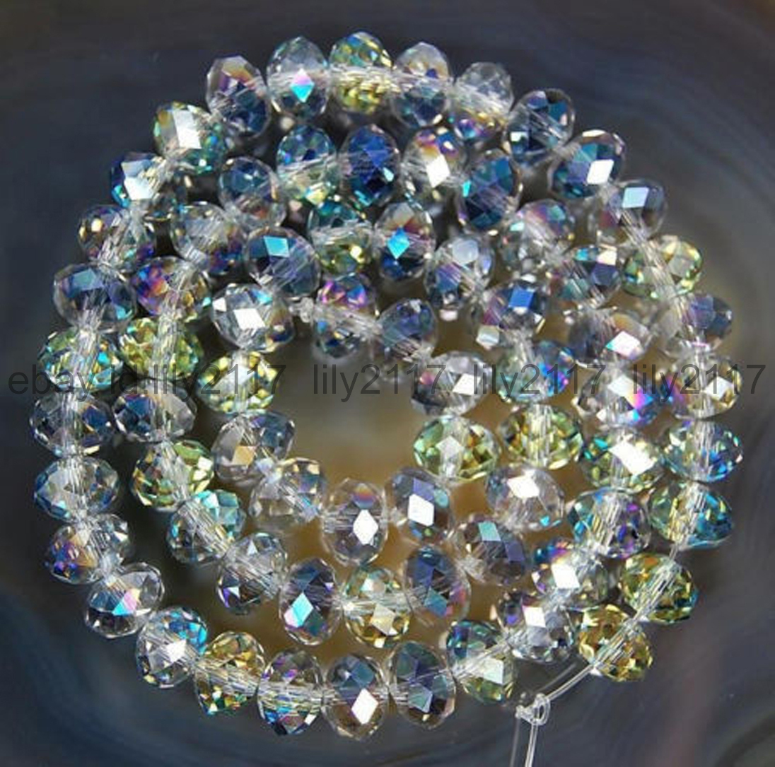 как выглядит 150pcs 3x4mm Multicolor AB Crystal Faceted Roundel Gems Loose Beads фото