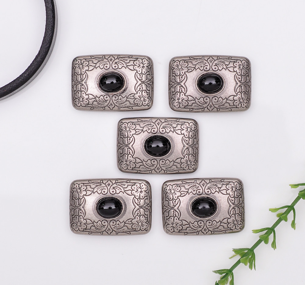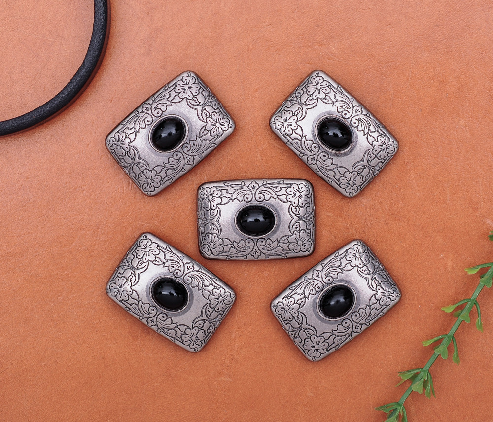 4PC 32X22MM SILVER BLACK Turquoise Western Flower Decor Saddle Belt Conchos