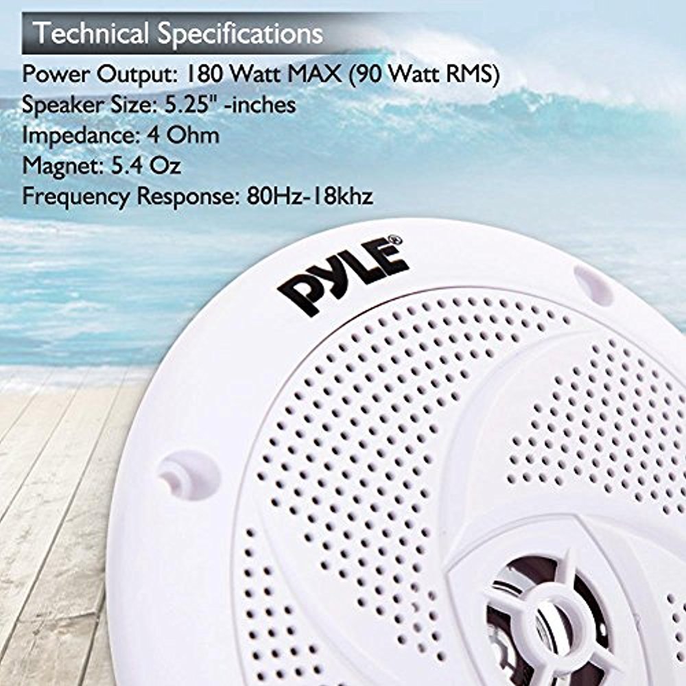 Pyle Waterproof Rated Marine Speakers 5.25'' 180 Watt Pair
