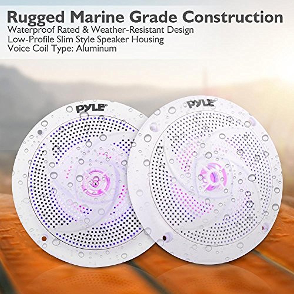 Waterproof Rated Marine LED Speakers, Low-Profile Slim Pair, 6.5 240 Watt