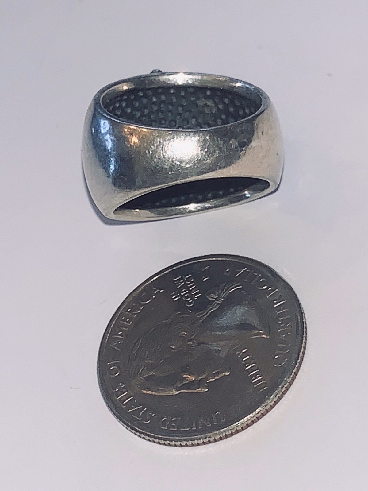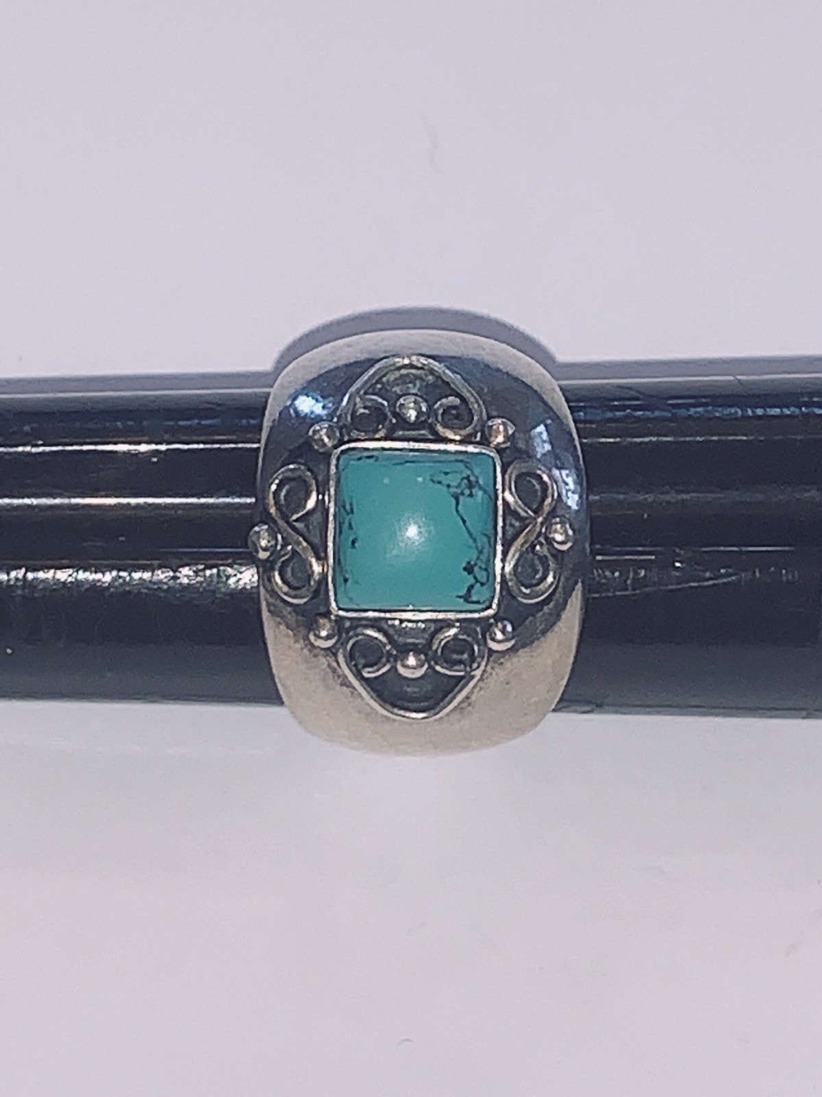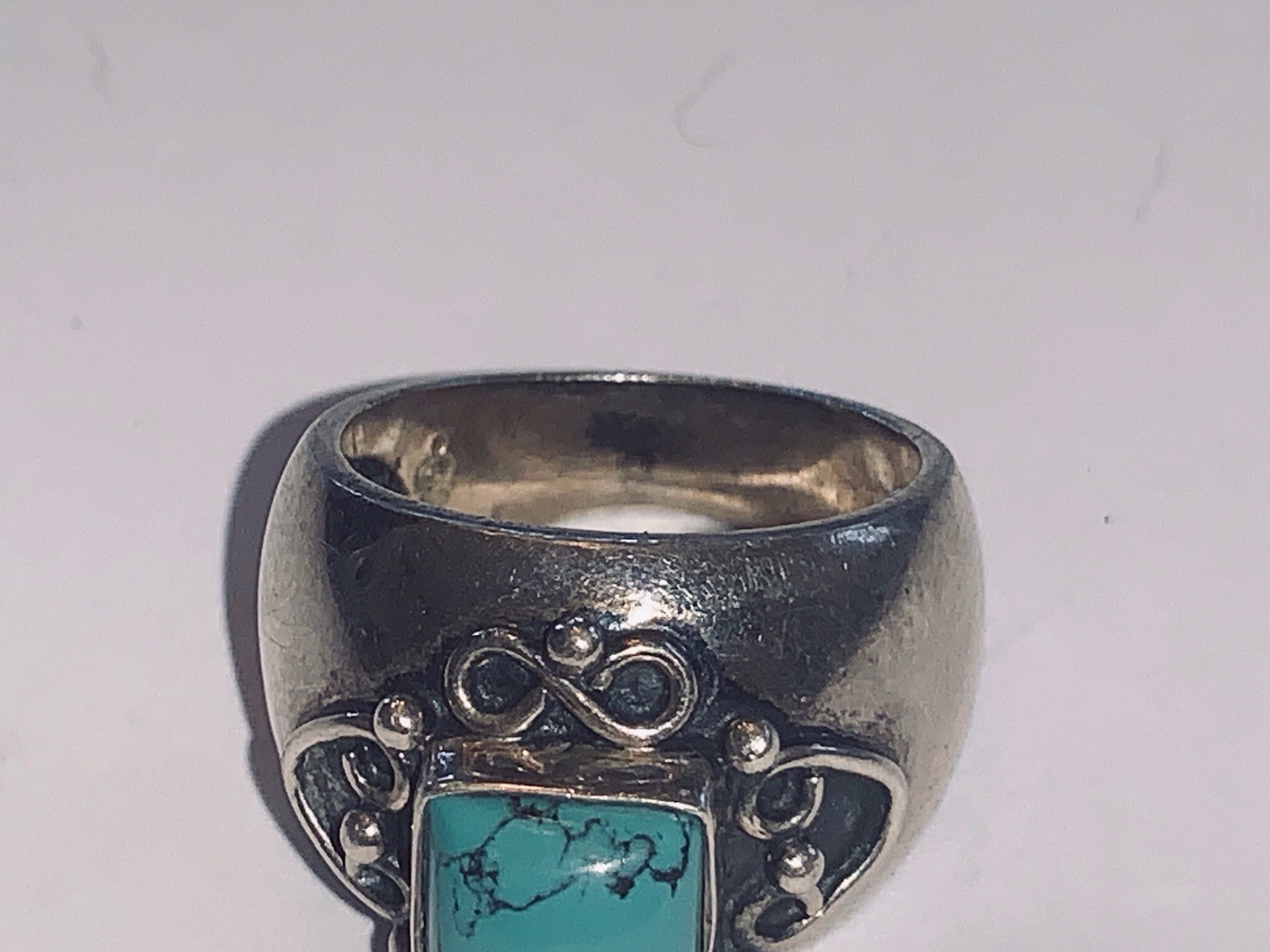 как выглядит FANCY Turquoise STERLING SILVER Wide Band Modern Boho Artisan Ring Signed Sz7 фото