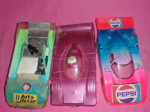 3 Used Painted Slot Car Bodies 88 Purple Blue to Pink Pepsi 4 Green Auto Meter