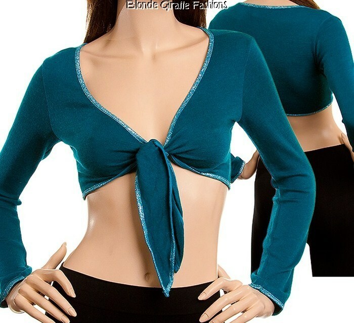 Silver Shimmer Edged Long Sleeve Tie Front Cropped Bolero Shrug Cardigan Top