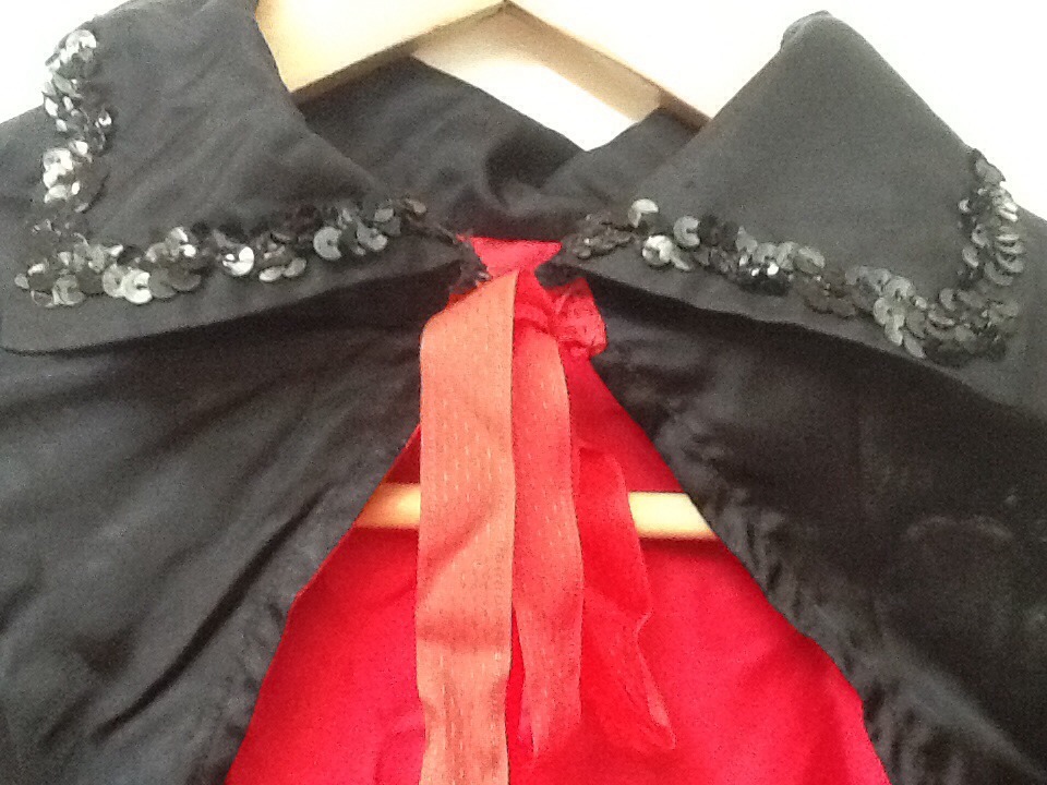 Dracula Vampire Cape Child's 30 Black Red Lined Sequin Collar