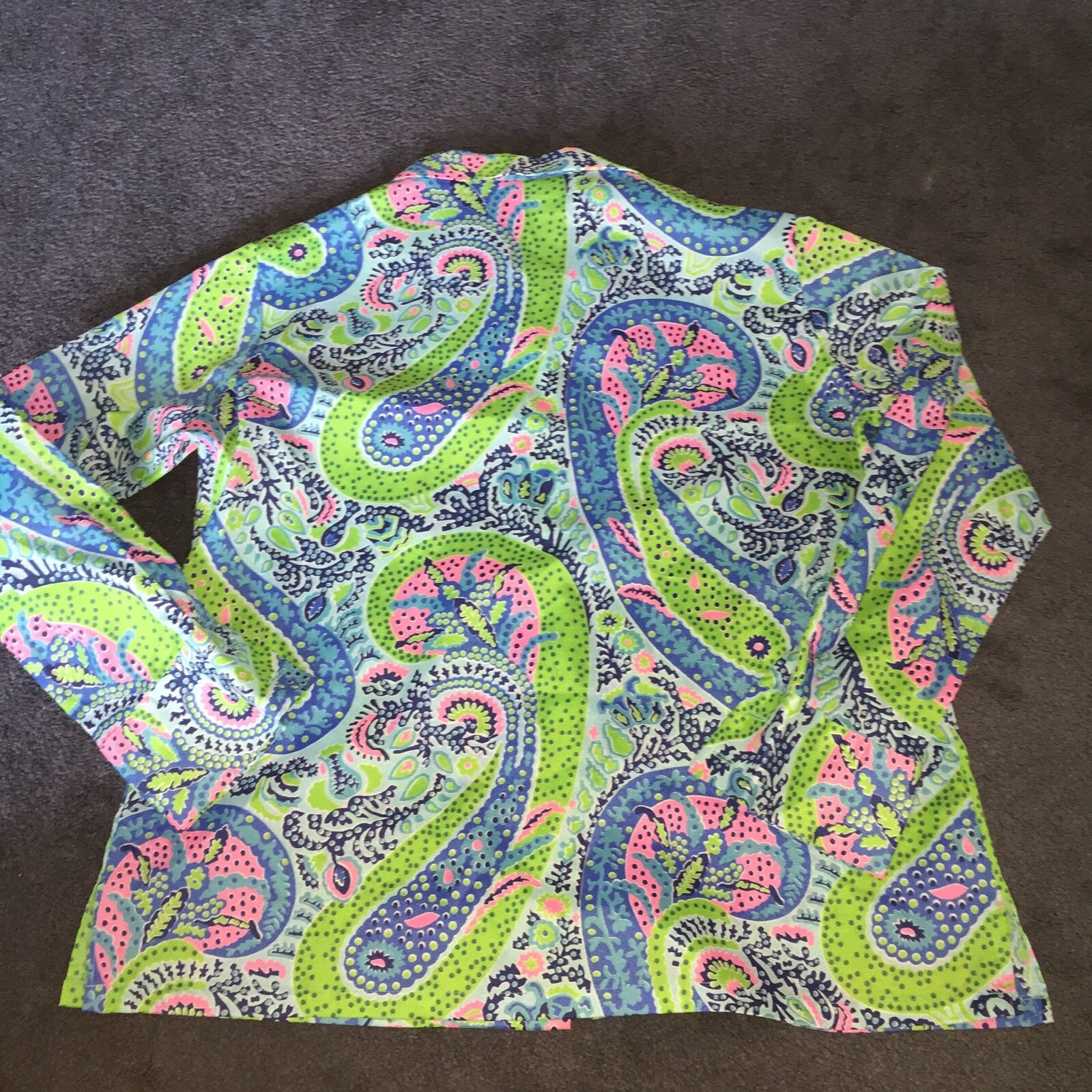 как выглядит Womens Vintage BLOUSE Green and Blue Paisley Pattern 100 Polyester 46 Bust XXL фото