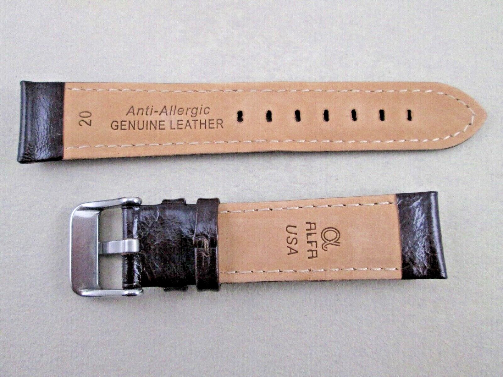 20mm genuine leather watch band dark brown shiny in finish stitched padded