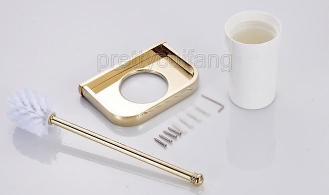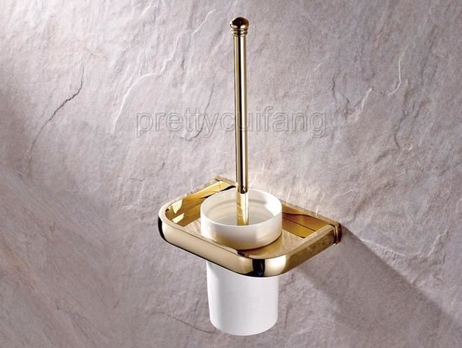 Bathroom Accessory Wall Mounted Gold Color Brass Toilet Brush Holder Set Pba845