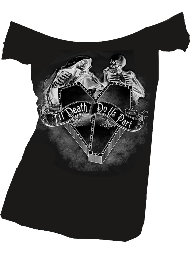 Se7en Deadly Til Death Do Us Part Off Shoulder Coffin Punk Goth T Shirt 2074-OS