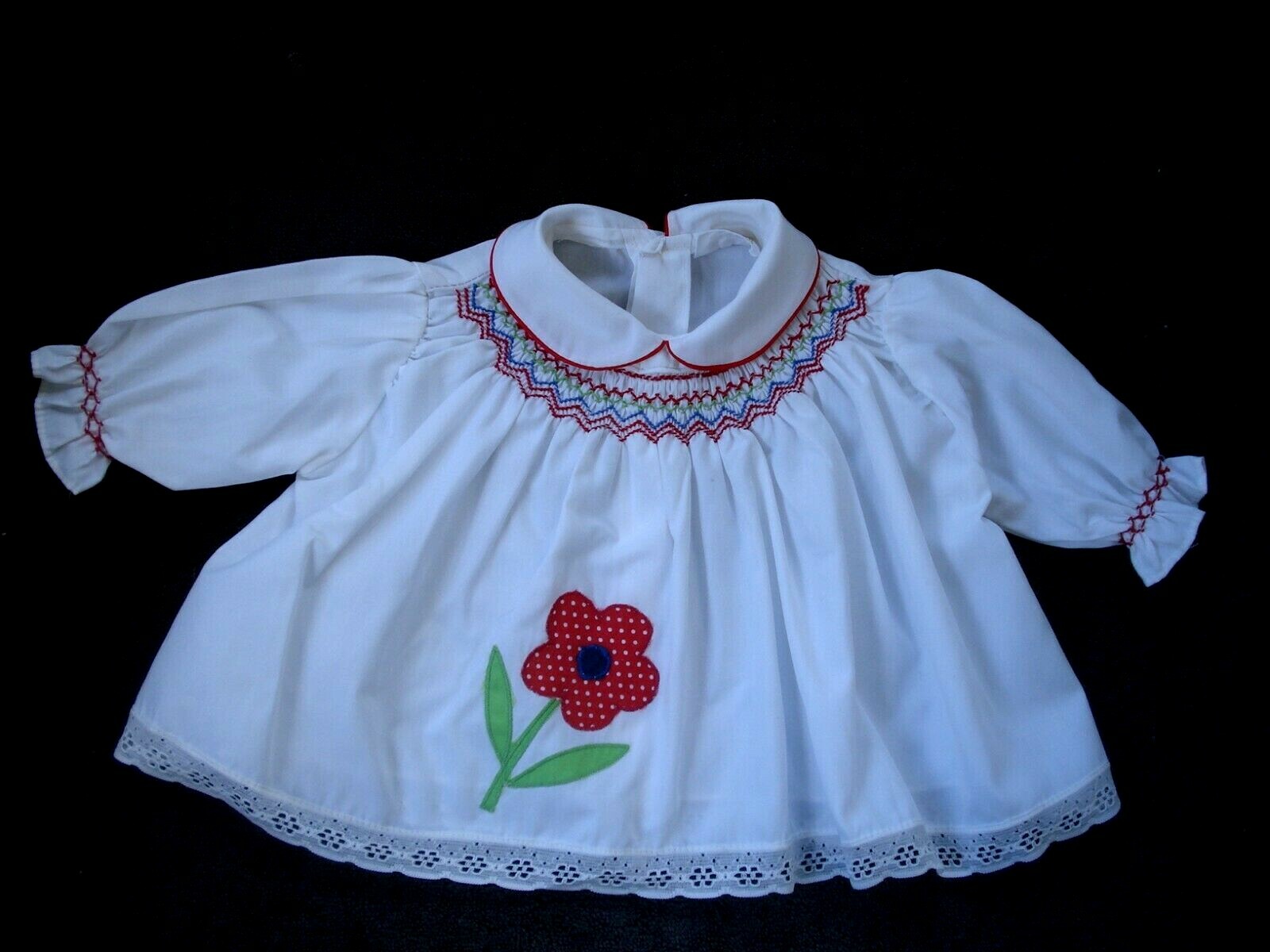Vintage Baby Togs Creation Infant Smocked Dress Top Appliqued Flower