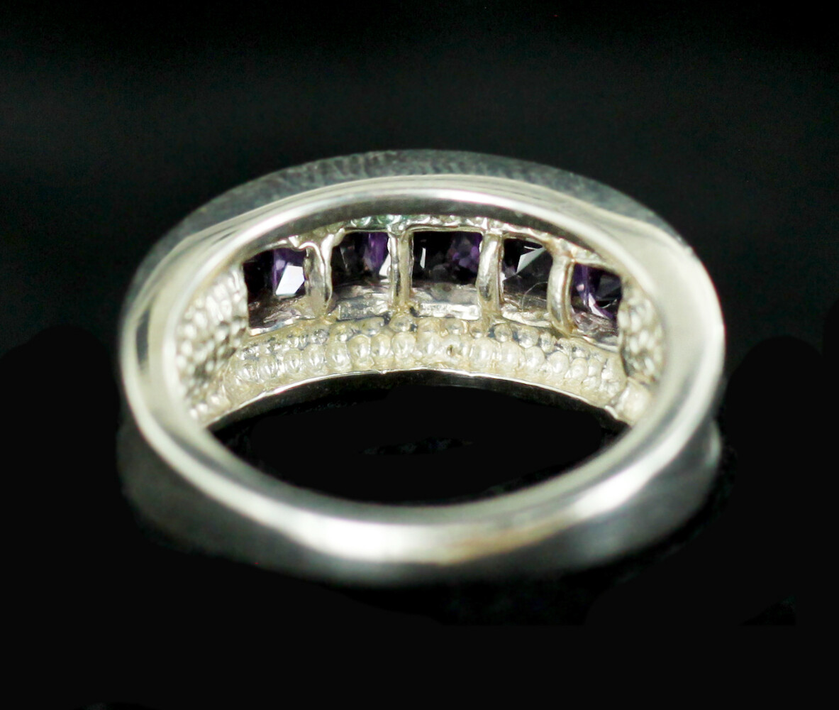 как выглядит Vintage Square Cut Amethyst Sterling Silver Ring sz 7.25 фото