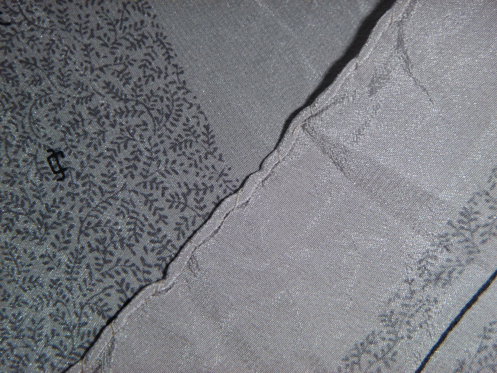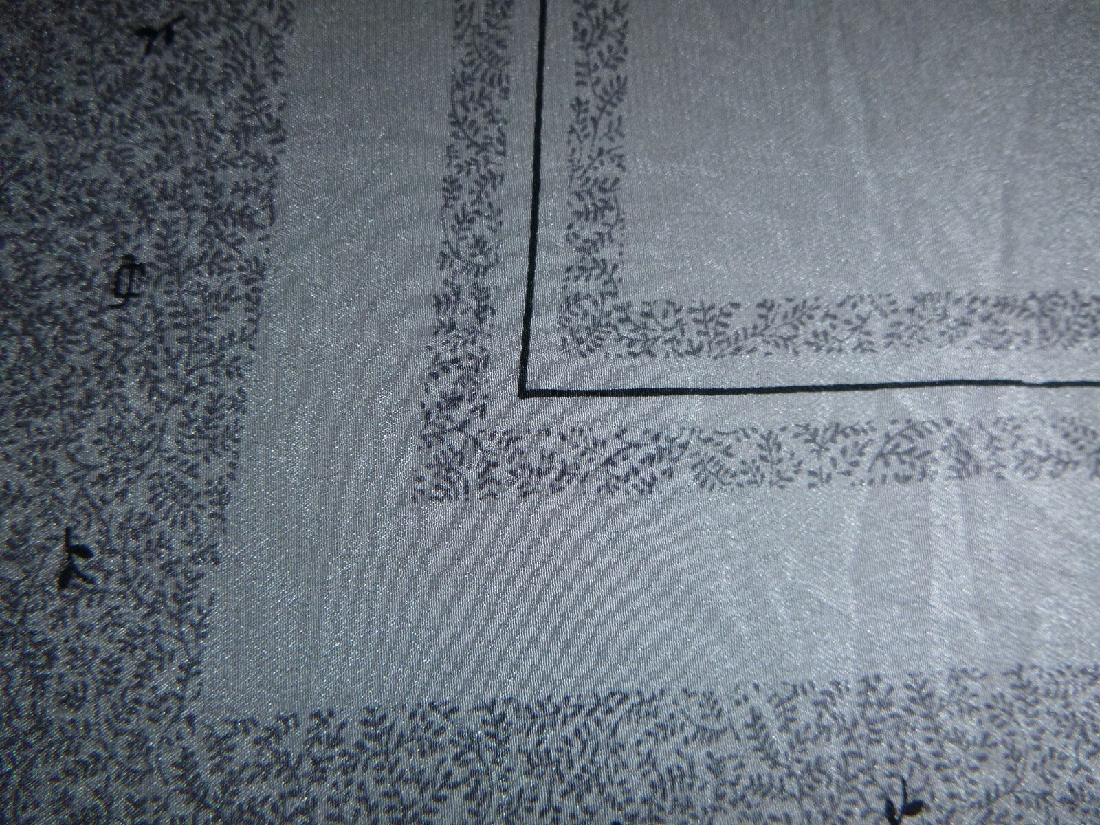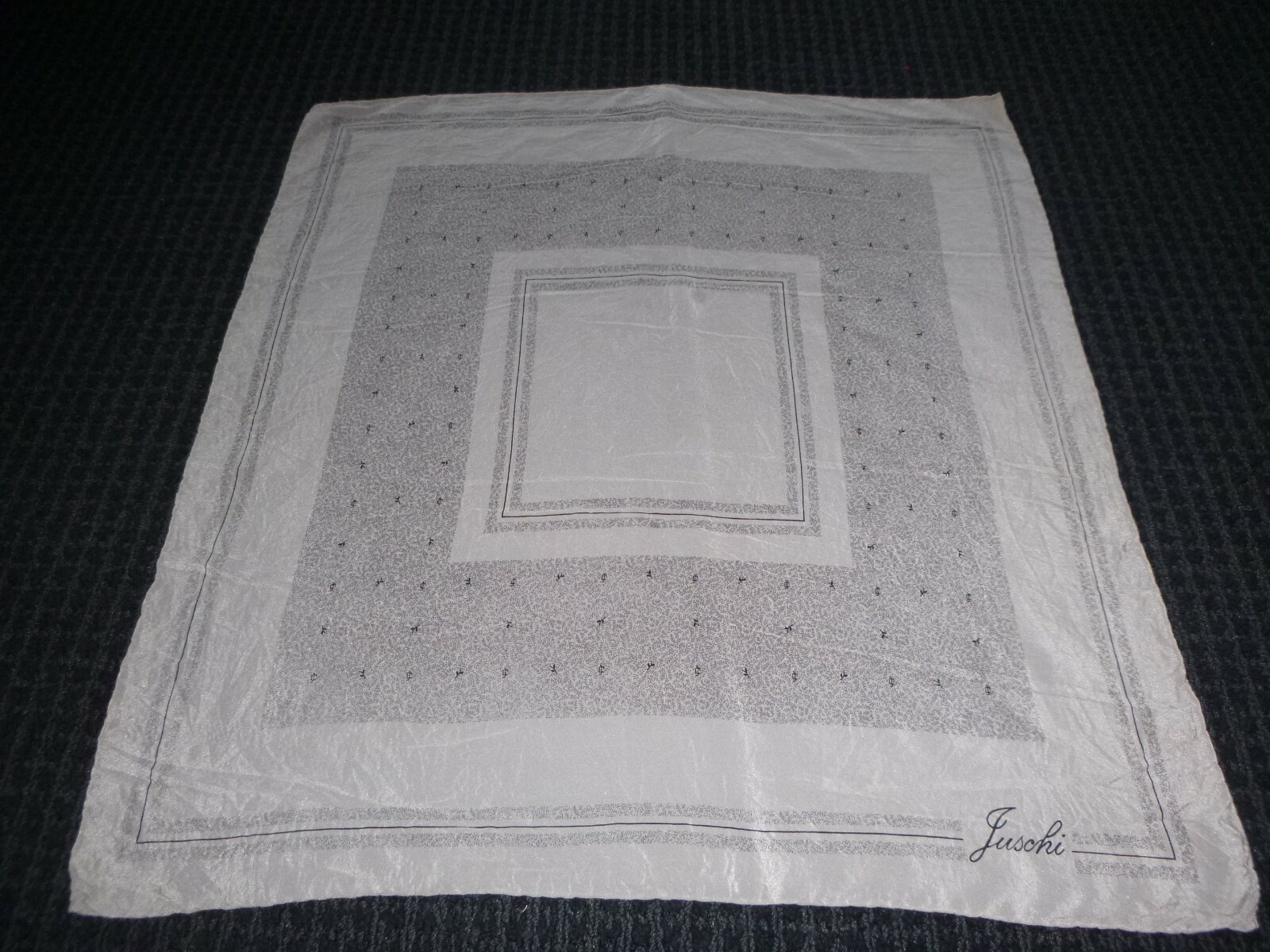 как выглядит Vtg 70s Juschi Square Silk Scarf Hand Rolled Grey Gray W/ Black Logo Leaves фото