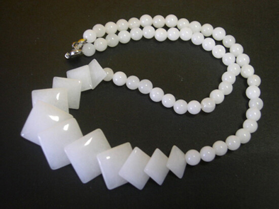как выглядит Fashion Genuine Natural White Jade Rhomb Leaf 18KWGP Clasp Women Girl Necklace фото