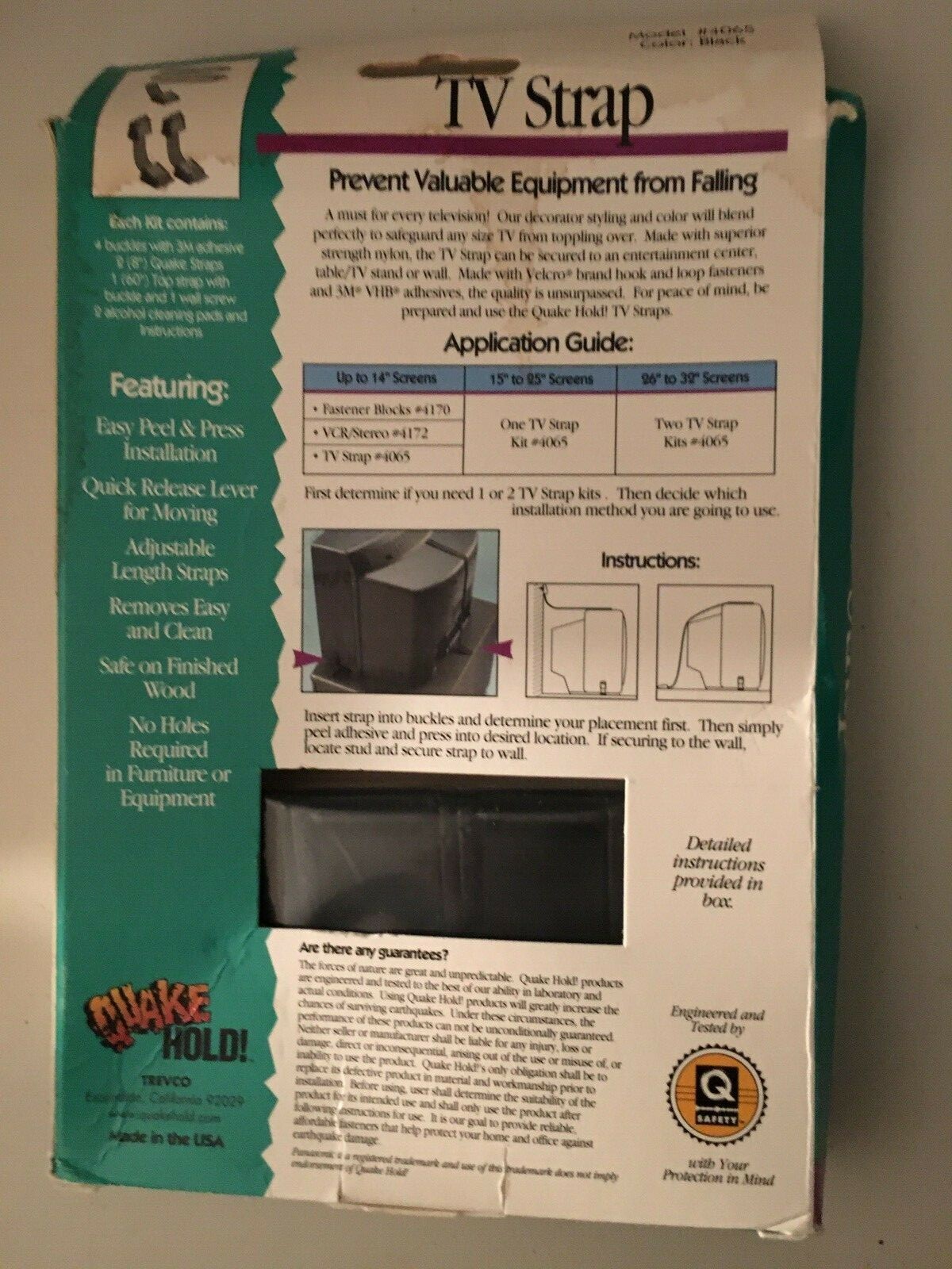 Quake Hold 4065 Black Quake Hold TV Strap Black NIB