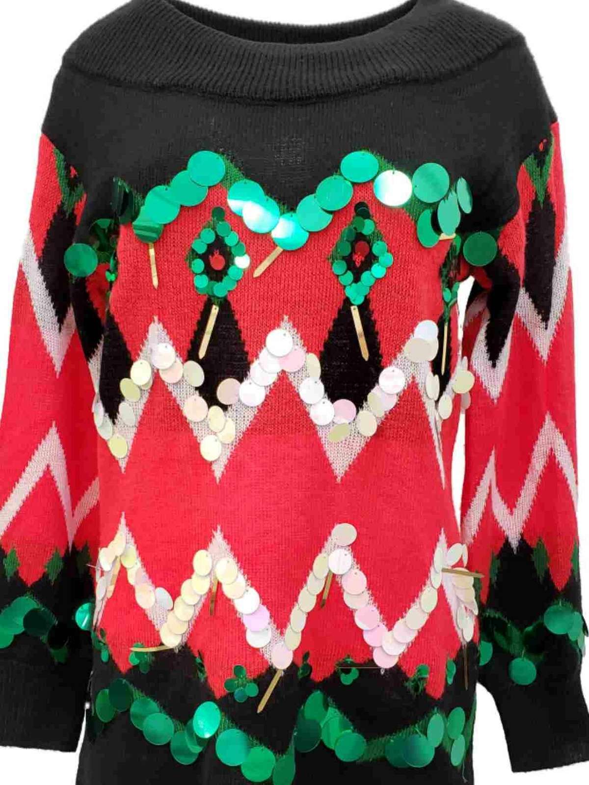 как выглядит Womens Black Red White Green Sequin Shiny Christmas Holiday Tunic Sweater Top фото