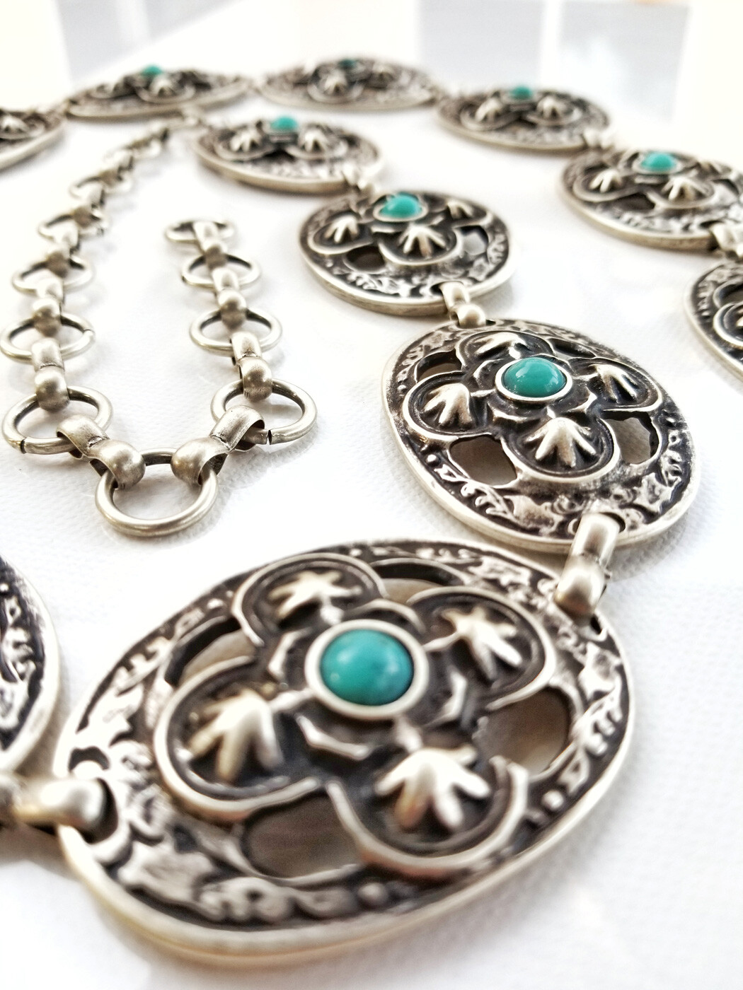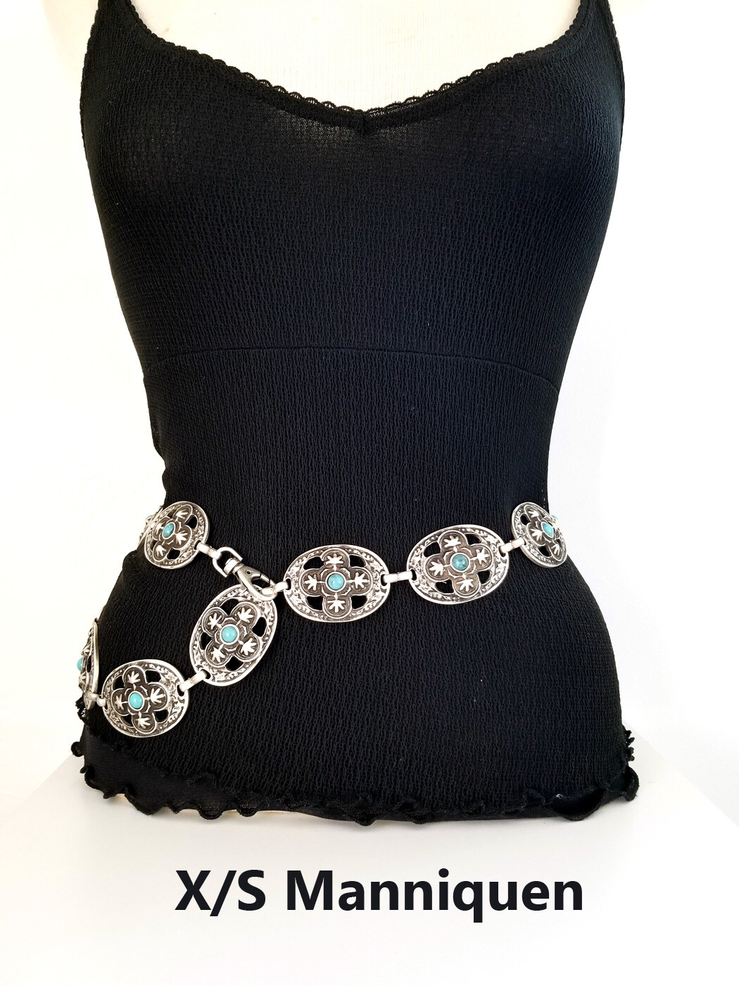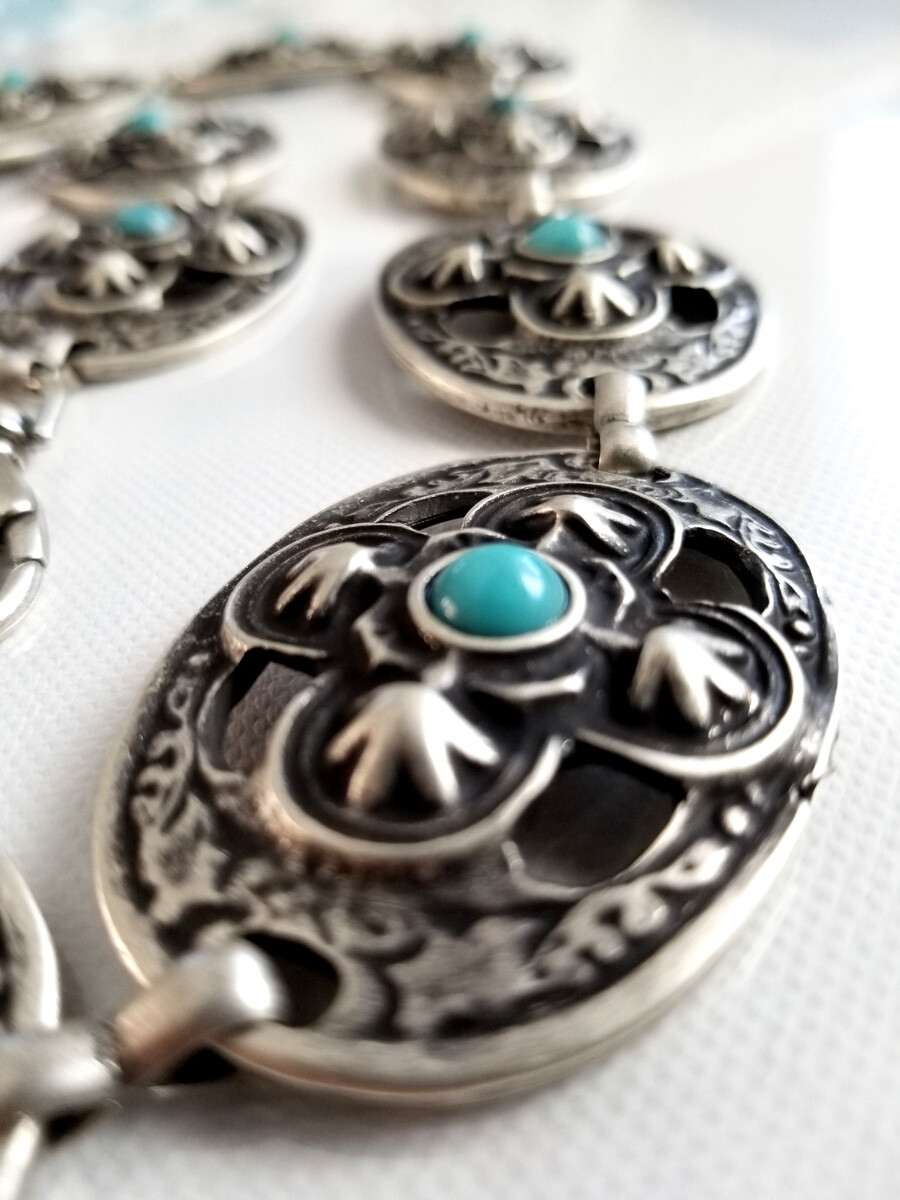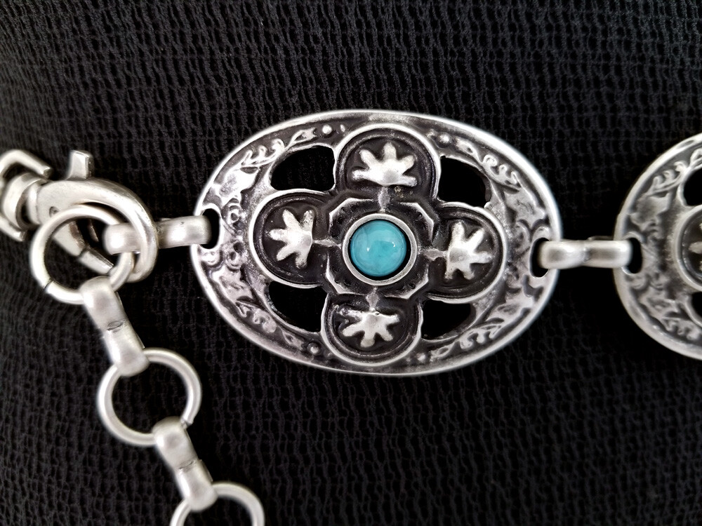 как выглядит Navajo Inspired Antique Silver Turquoise Concho Belt S/M/L- MADE IN ITALY фото