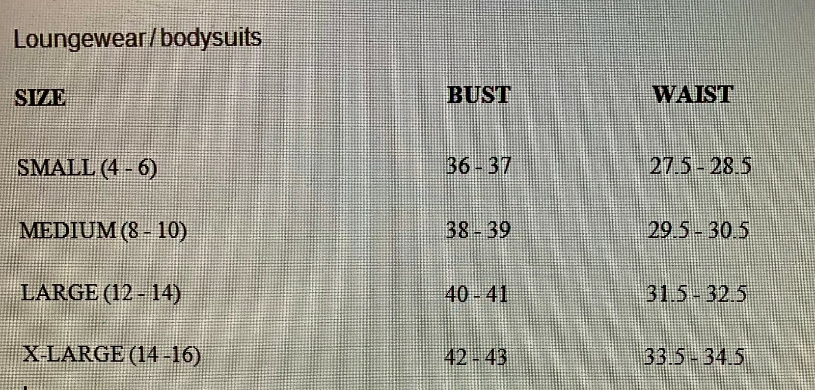 Intimates & Sleep Size (Women's): Varies