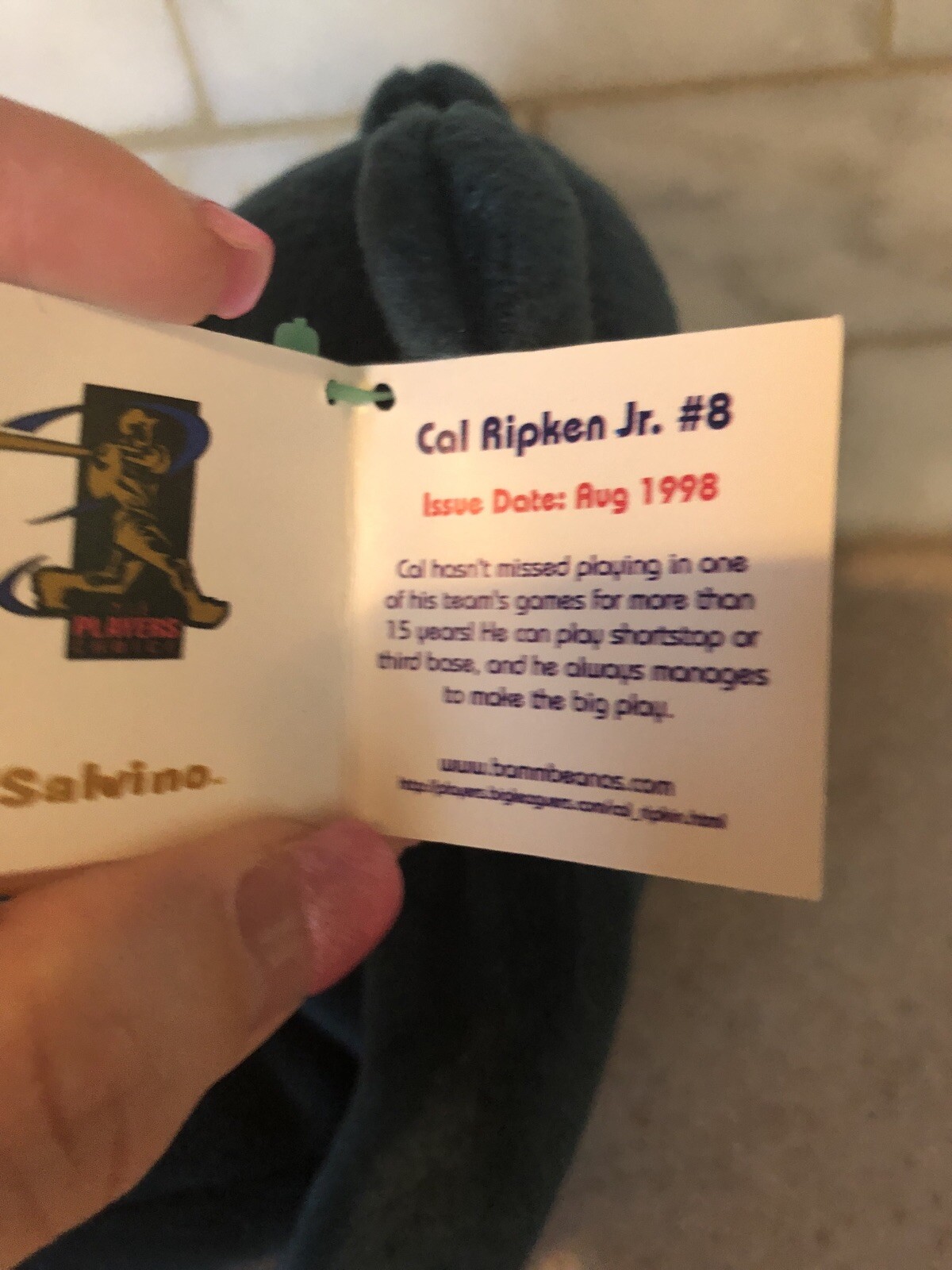 • M Cal Ripken Jr. Salvino's Bamm Beano's Beanie Teddy Bear Baseball Plush 1998