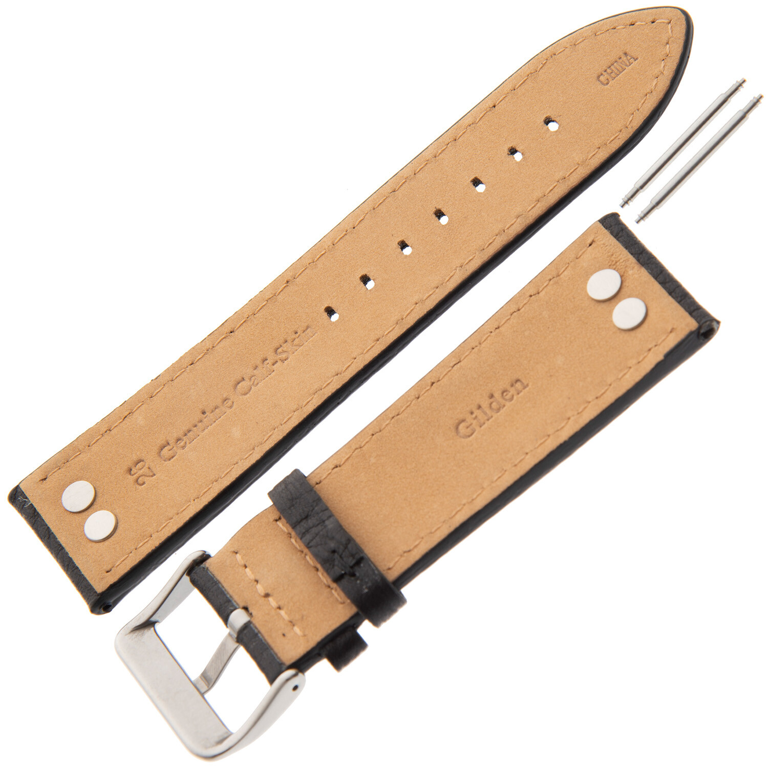 как выглядит Gilden 22-26mm Gents Industrial-Style Stitched Black Calfskin Watch Band SLS61 фото