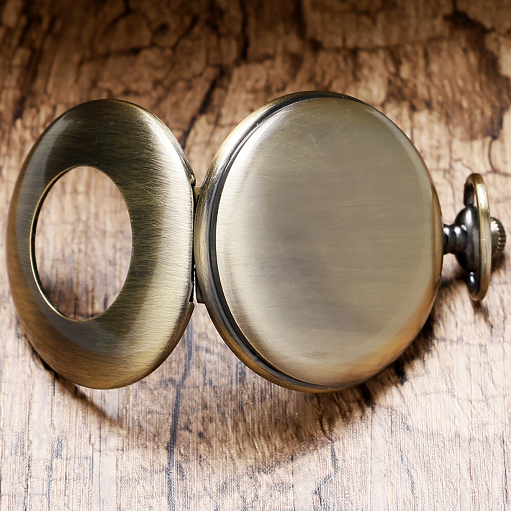 Steampunk Bronze Smooth Case Hand Winding Mechanical Pocket Watch FOB Chain