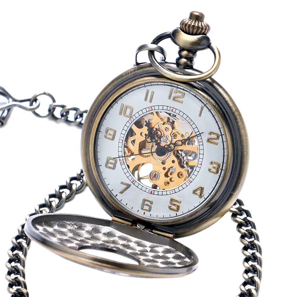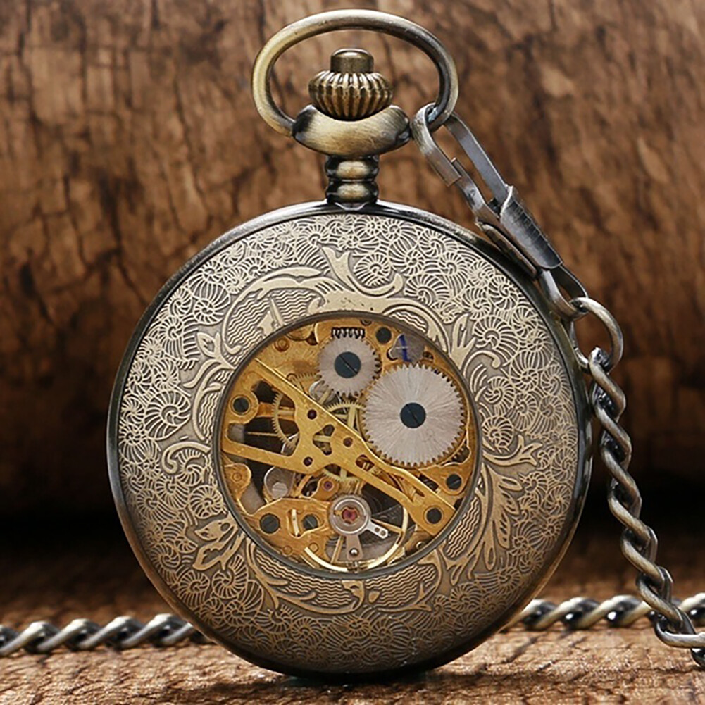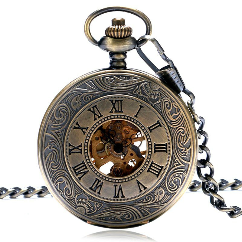 Retro Carving Roman Number Unisex Mechanical Hand Wind Pocket Watch Pendant Gift