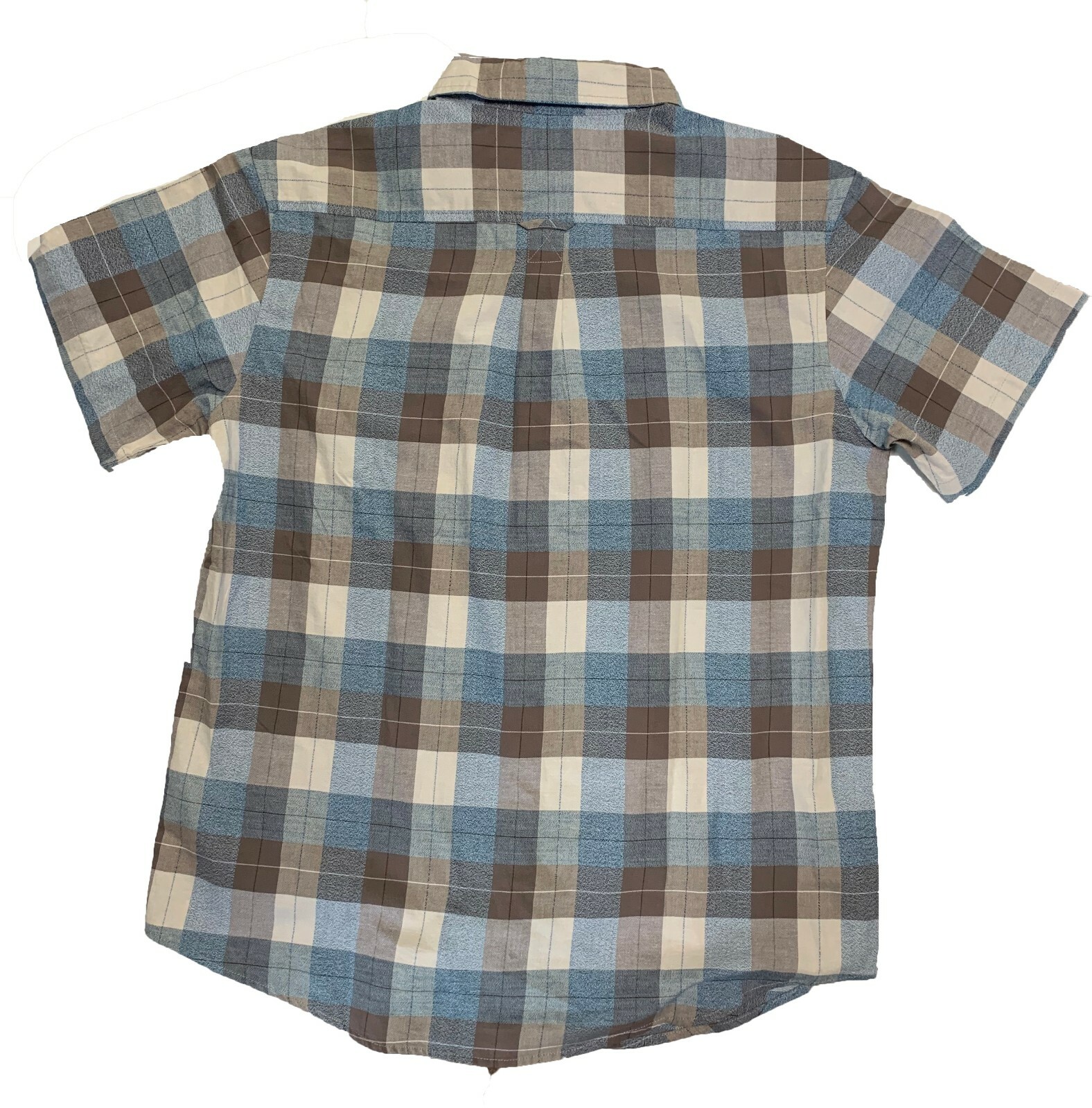 как выглядит Grizzly Mountain Mens Woven S/S Shirt Large Plaid Blue-Brown-Cream фото
