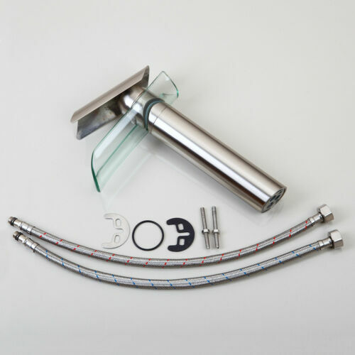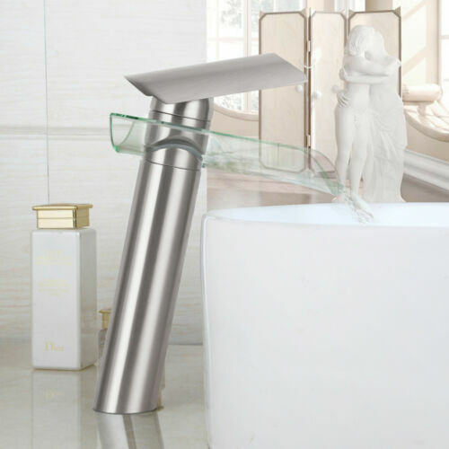 Glass Spout Brushed Nickel Bathroom Basin Sink Mixer Faucet 1 Handle Hole Taps