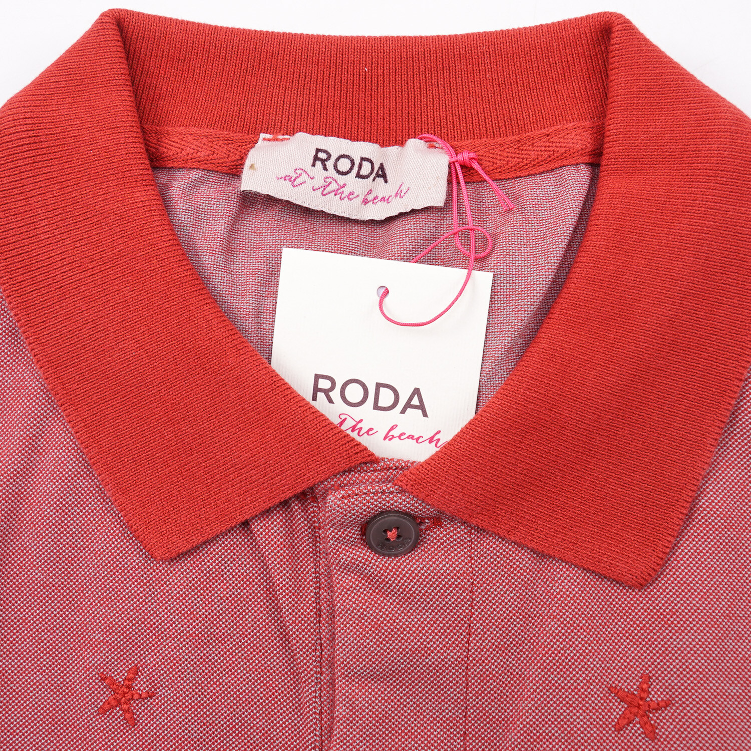 как выглядит Roda Slim-Fit Short Sleeve Red and White Starfish Print Polo Shirt XL фото