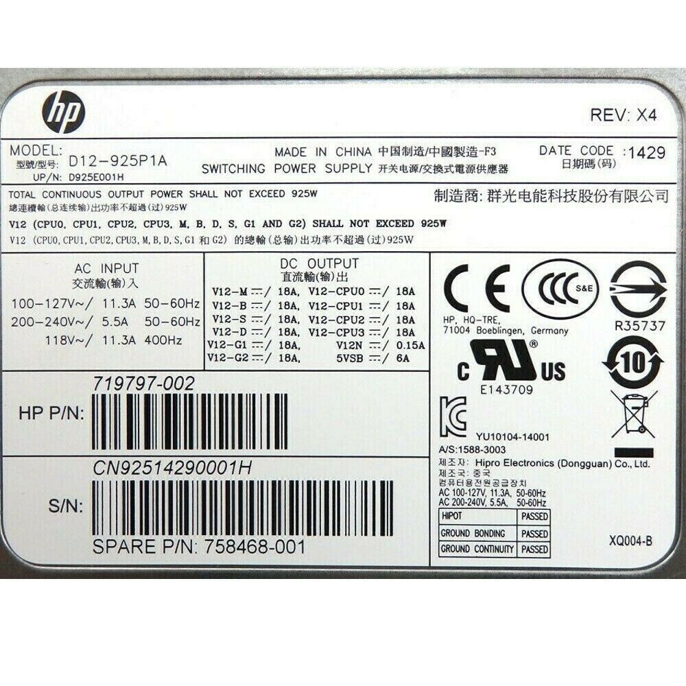 HP Z640 925W Switching PSU Power Supply Unit 758468-001 719797-002 100 Tested
