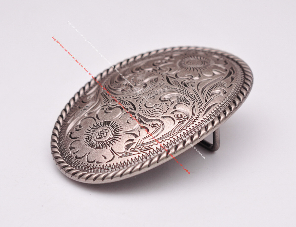 Silver Cowboy Rodeo Floral Carved Western Leather Belt Buckle fit 45MM Strap