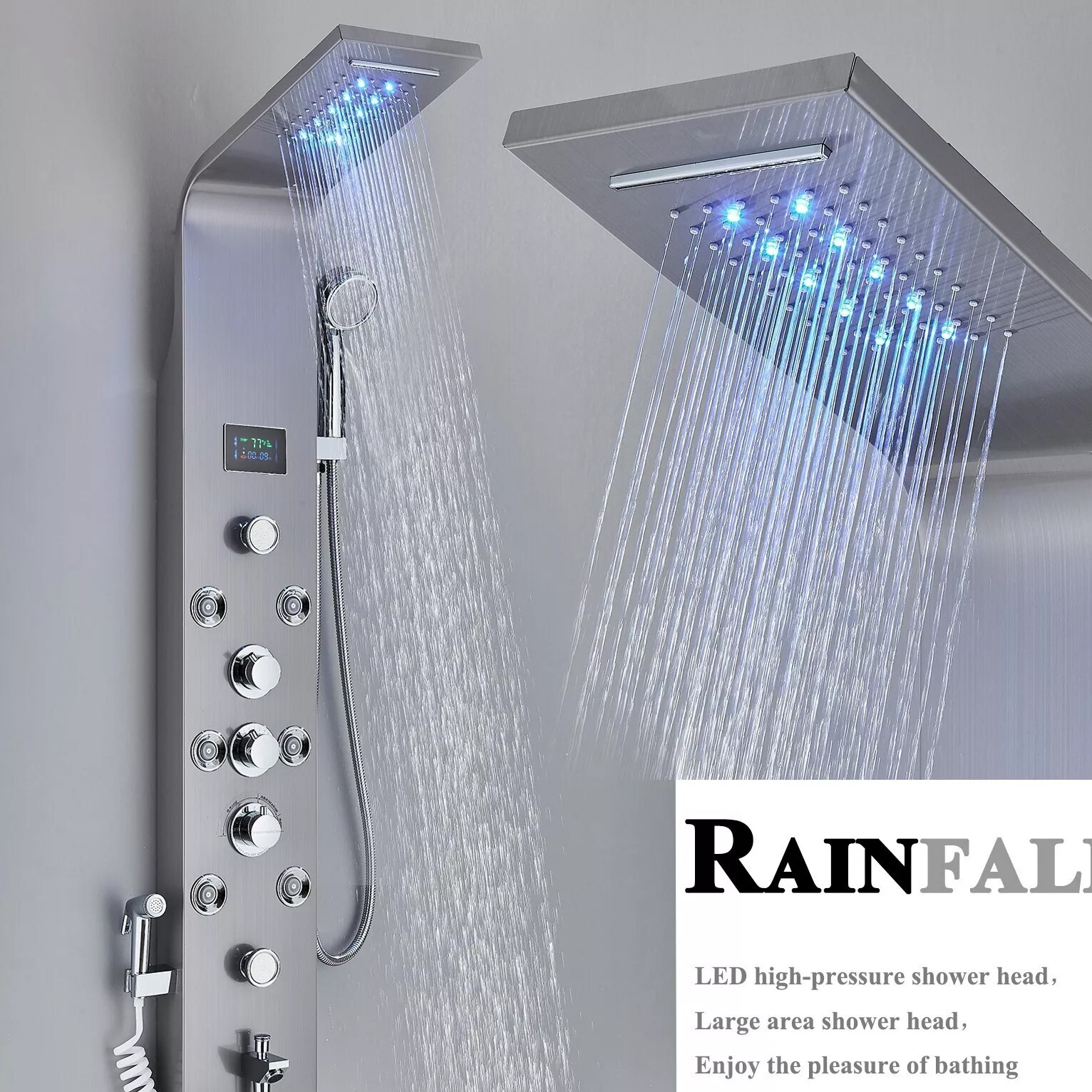 LED Stainless Steel Rain Shower Panel Tower Faucet Massage System Jets Fixture