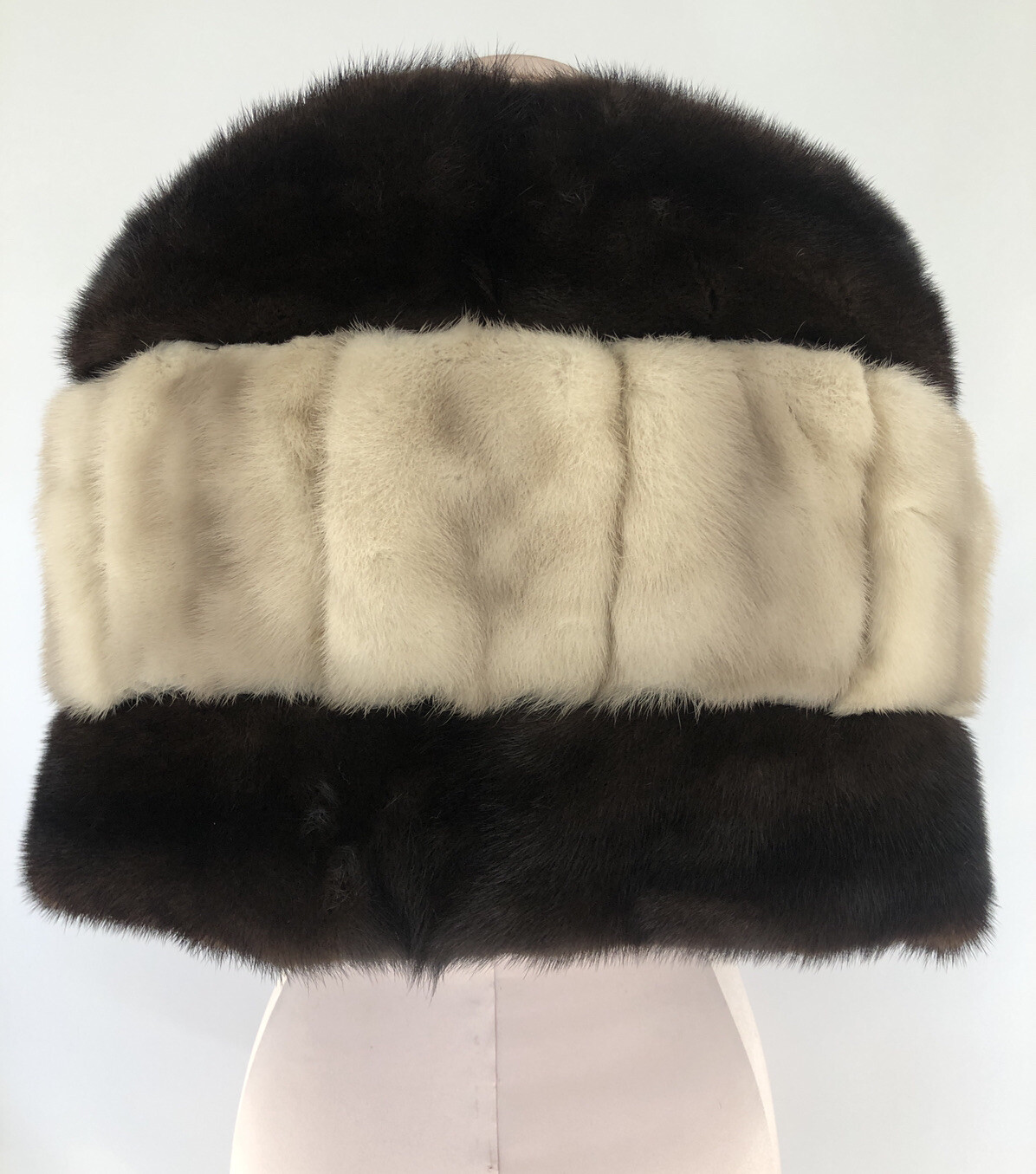 Mink Genuine Fur Stole Dk Brown/ ivory fur shawl, Wedding, exceptional quality