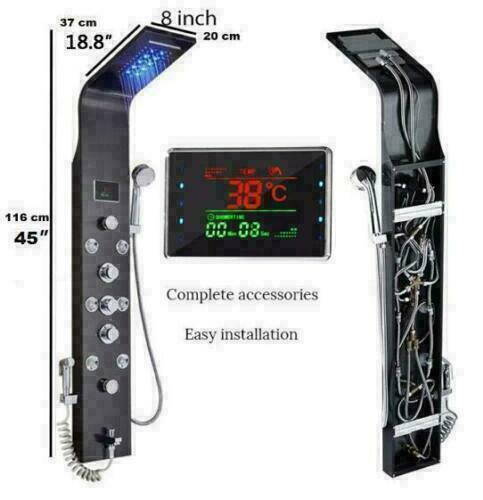 как выглядит ELLO ALLO Black Stainless Steel Shower Panel LED Tower Rain Massage System Jets фото
