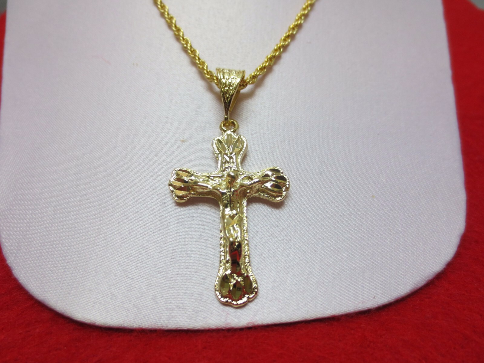 как выглядит 14 KT GOLD EP CRUCIFIX CROSS 2.5 MM 16" ROPE CHAIN -3065,LIFETIME GUARANTY фото