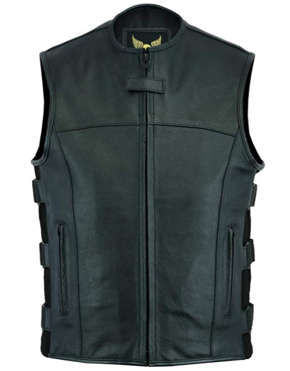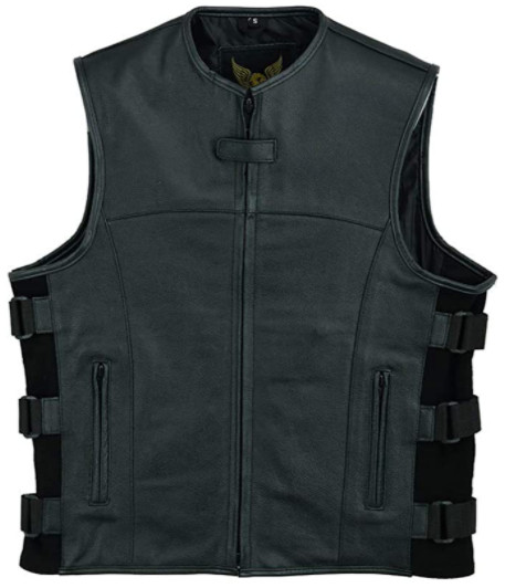 Leatherick Mens SWAT Tactical Style Side Straps Motorcycle Biker Leather vest