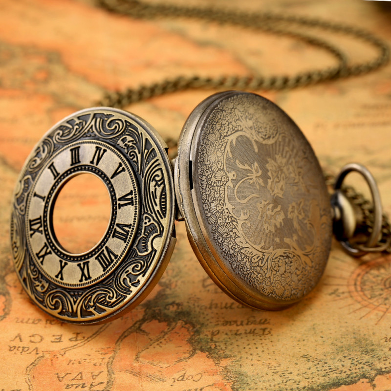 как выглядит Steampunk Carving Roman Number Case Unisex Quartz Pocket Watch Pendant Chain фото