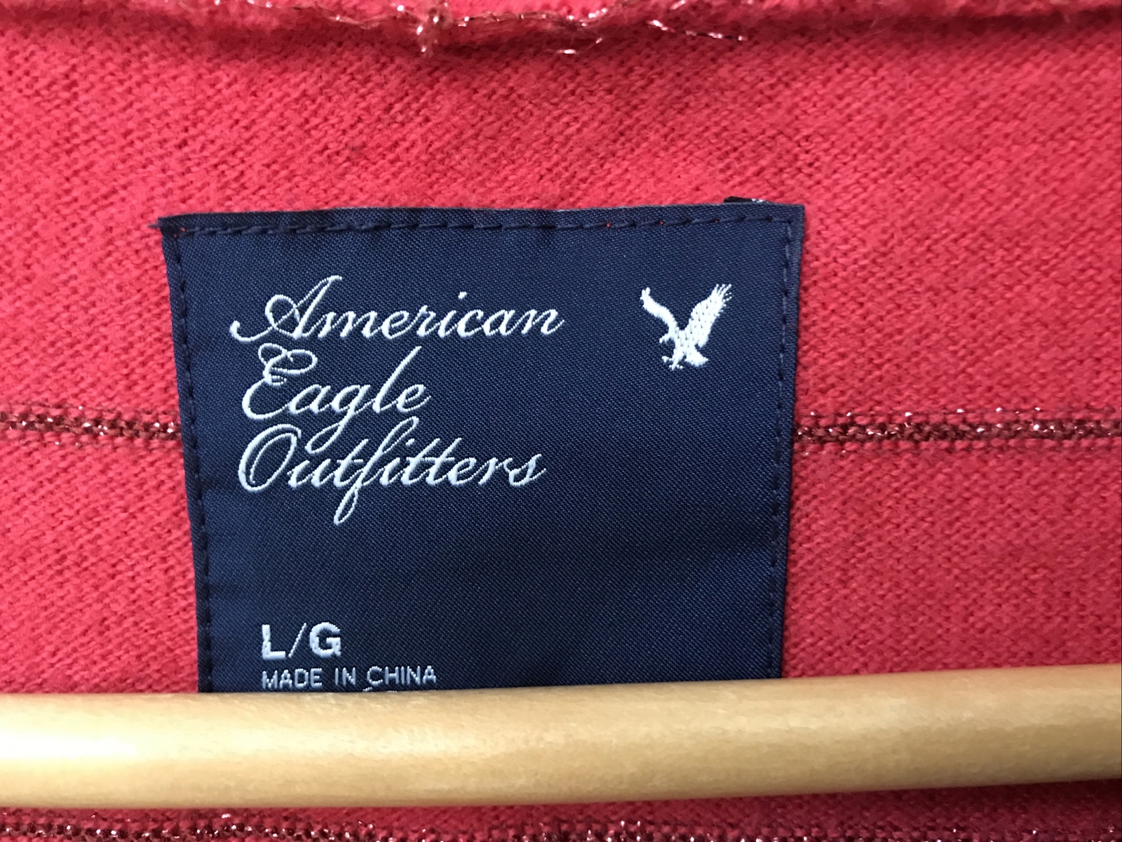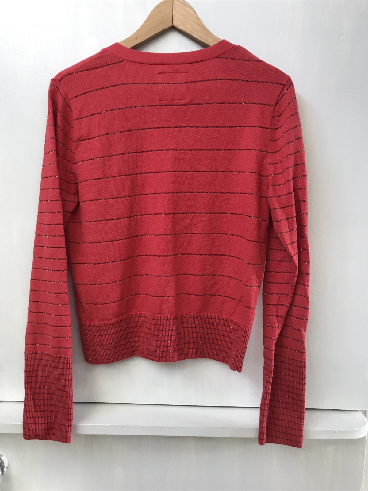 как выглядит American Eagle Outfitters Red Sparkle Striped Button Up Cardigan Womens Size L фото