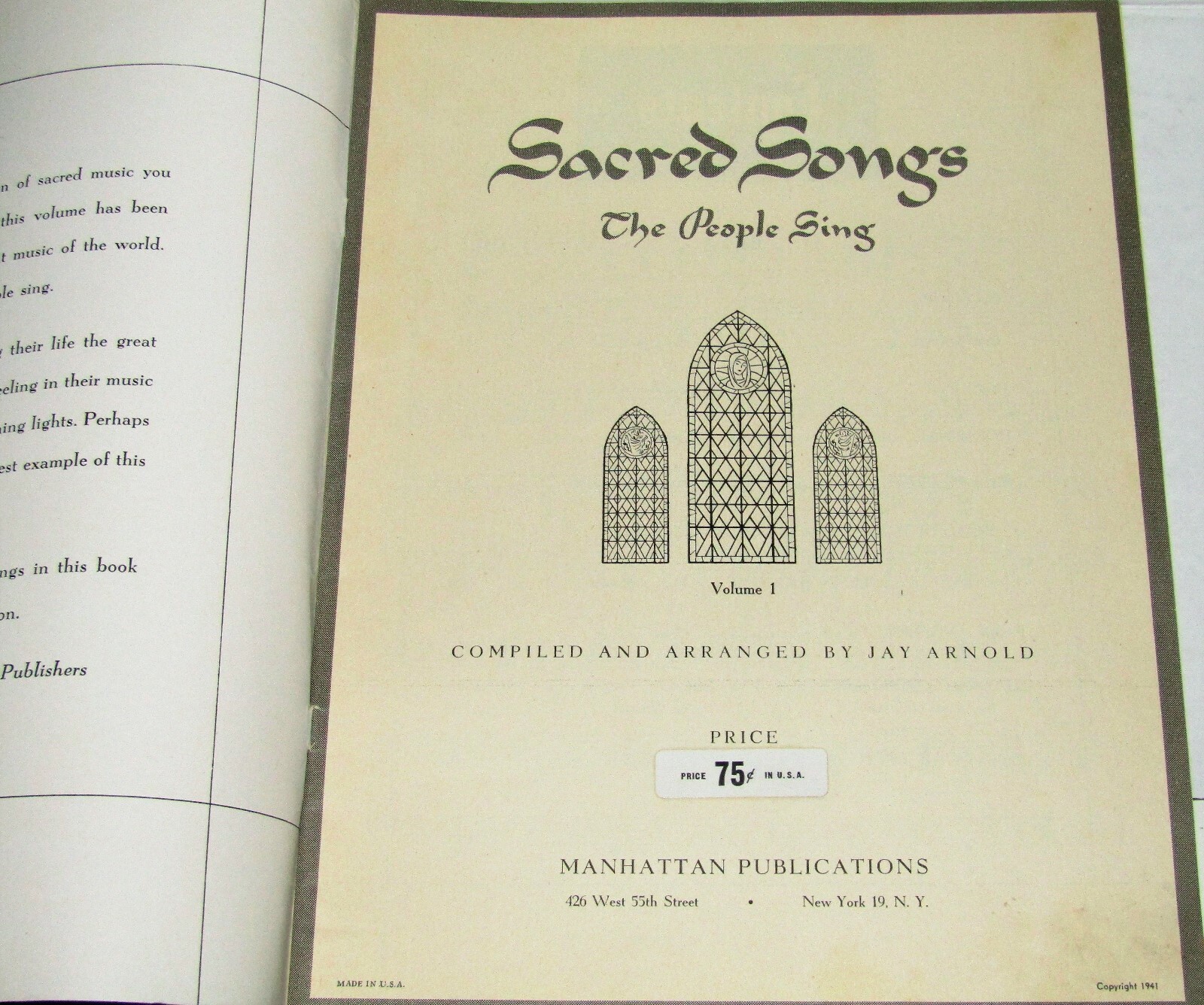 как выглядит Sacred Songs The People Sing Volume 1 Vintage 1941 Manhattan Publications Book фото
