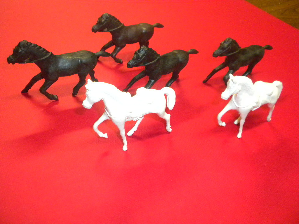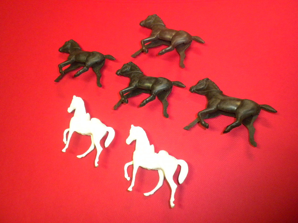 6 HORSES soft plastic MARX/MPC/TIMMEE/LIDO/REL/BMC related vintage playset LOT 3