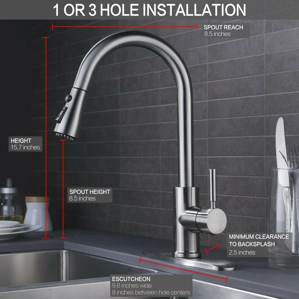 Commercial Kitchen Sink Faucet with Sprayer Swivel Single Handle Pull Down Mixer