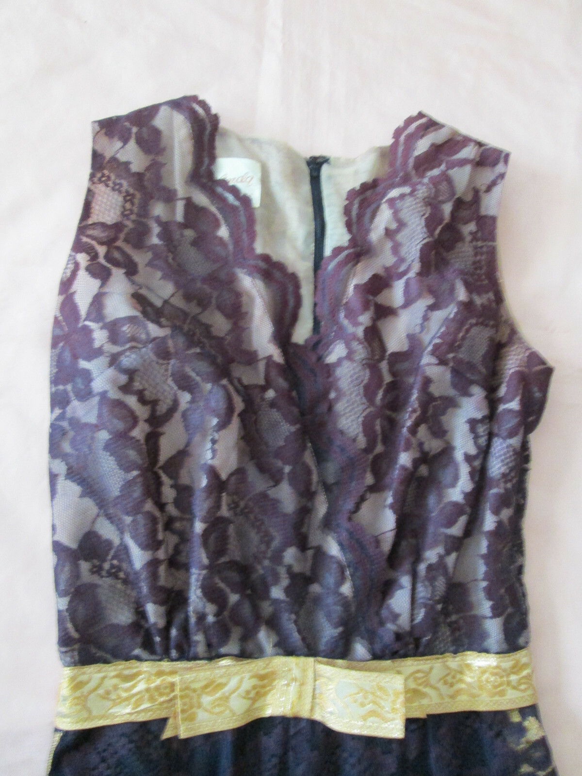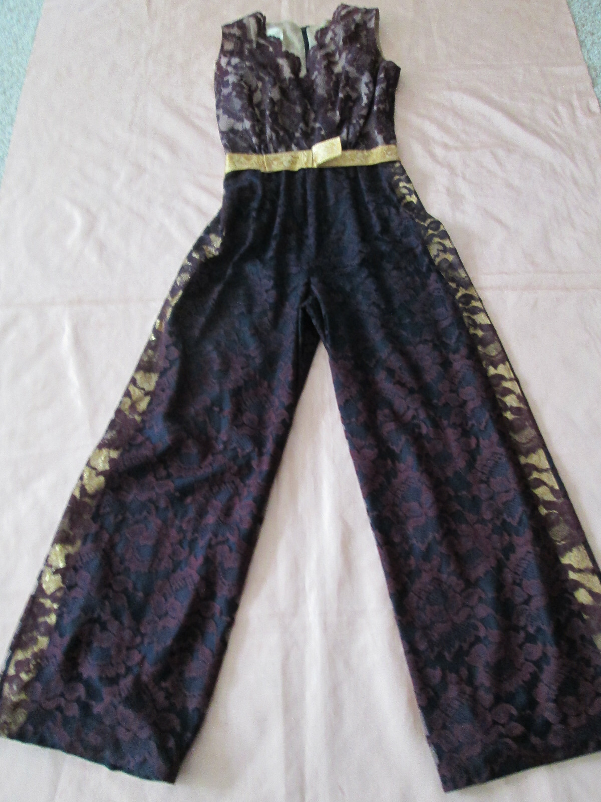 как выглядит BLACK Lace METALLIC Gold JUMPSUIT by MELINDA of California vintage фото