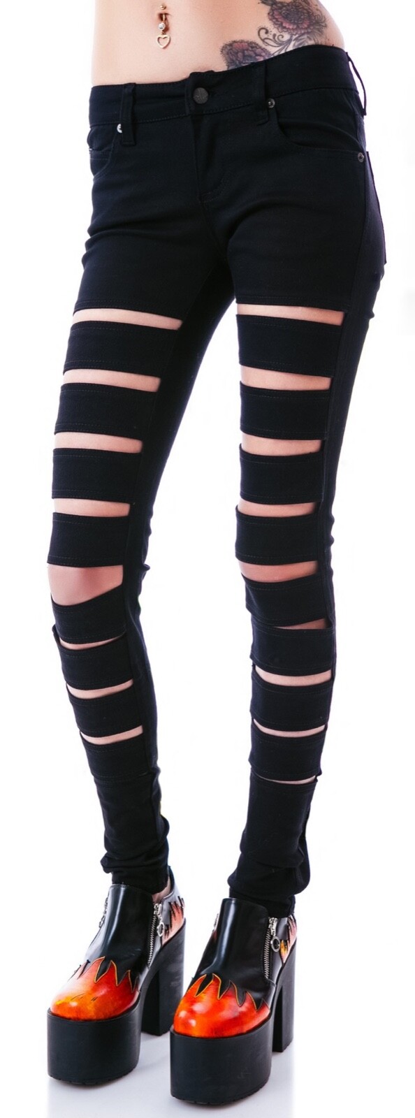 TRIPP NYC GOTH PUNK ROCKER METAL MOTO CUT OUT SLASH SKINNY PANTS JEANS IS4040