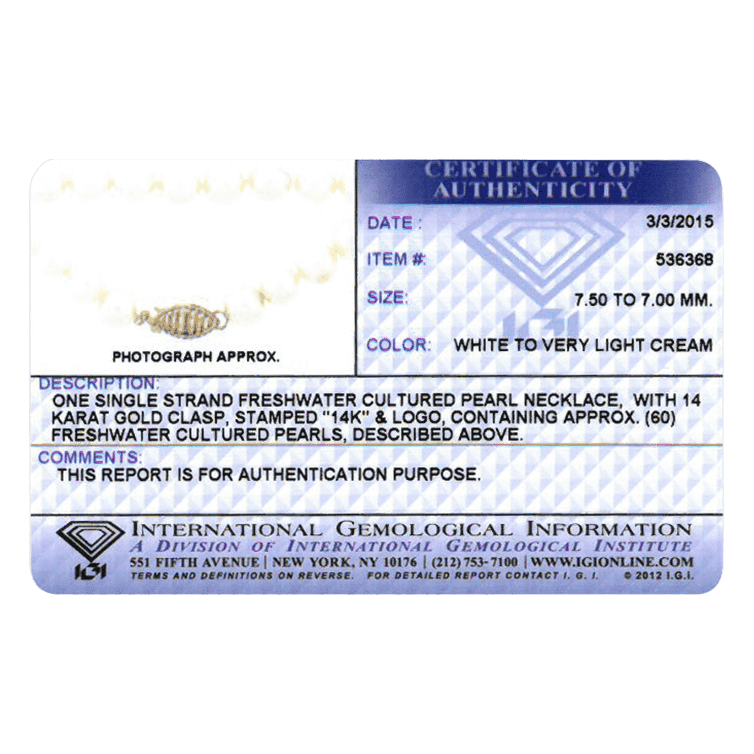 Welry 7mm Freshwater Pearl Strand Necklace in 14K Yellow Gold, 18