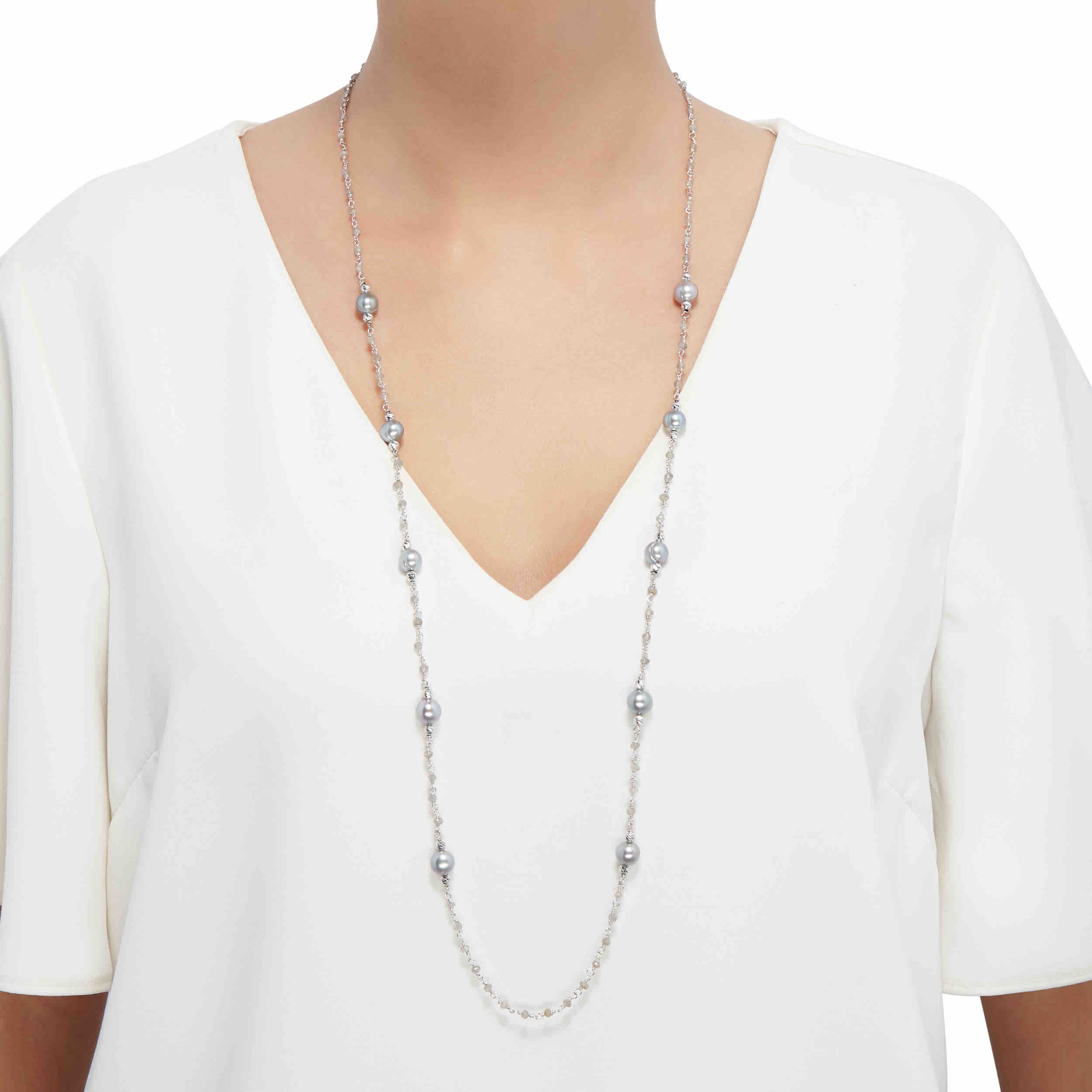 Welry Freshwater Grey Pearl Natural Spinel Necklace in Sterling Silver, 36.5