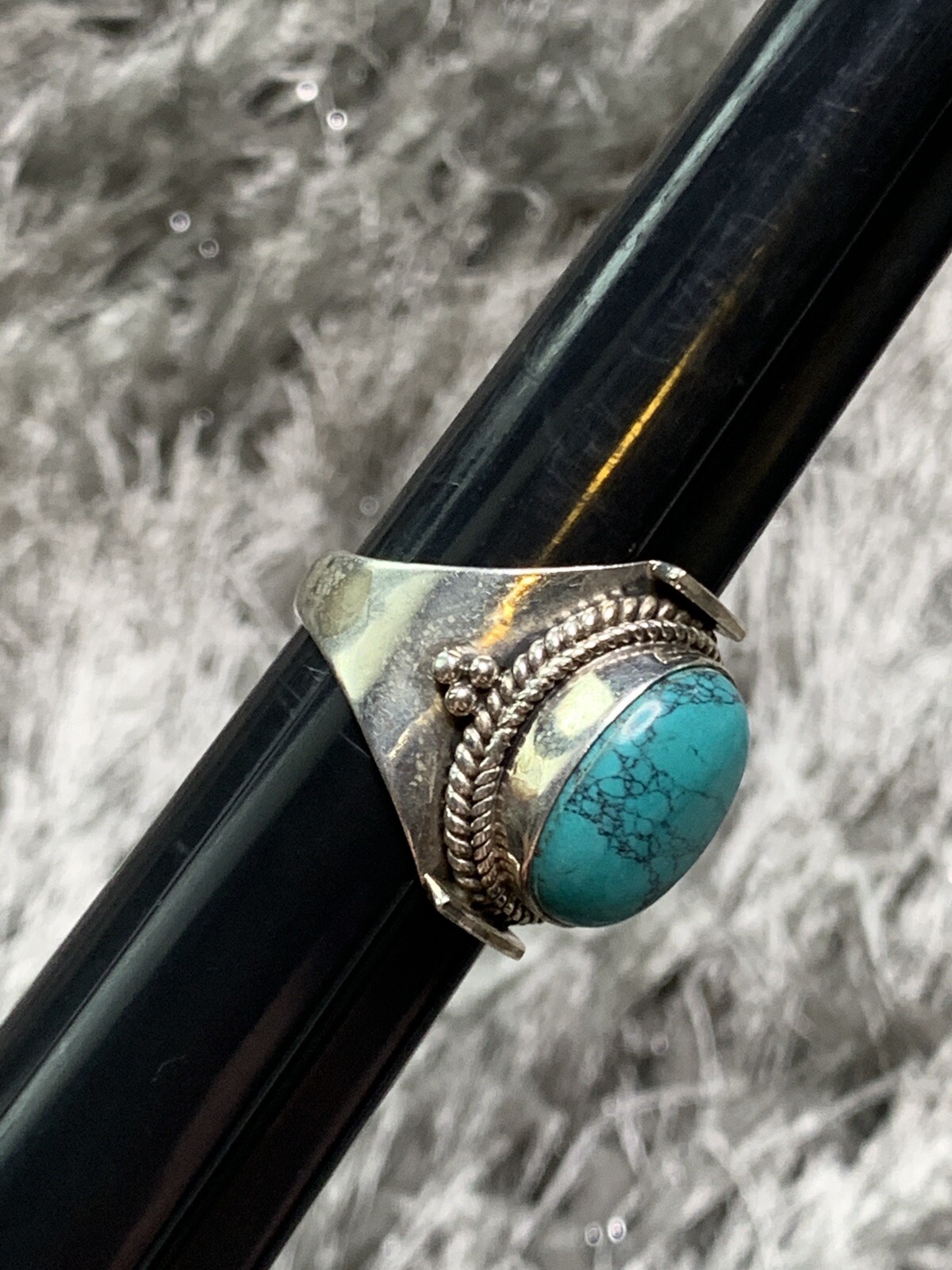 Israeli Artisan Solitaire Ring Turquoise 925 Sterling Silver