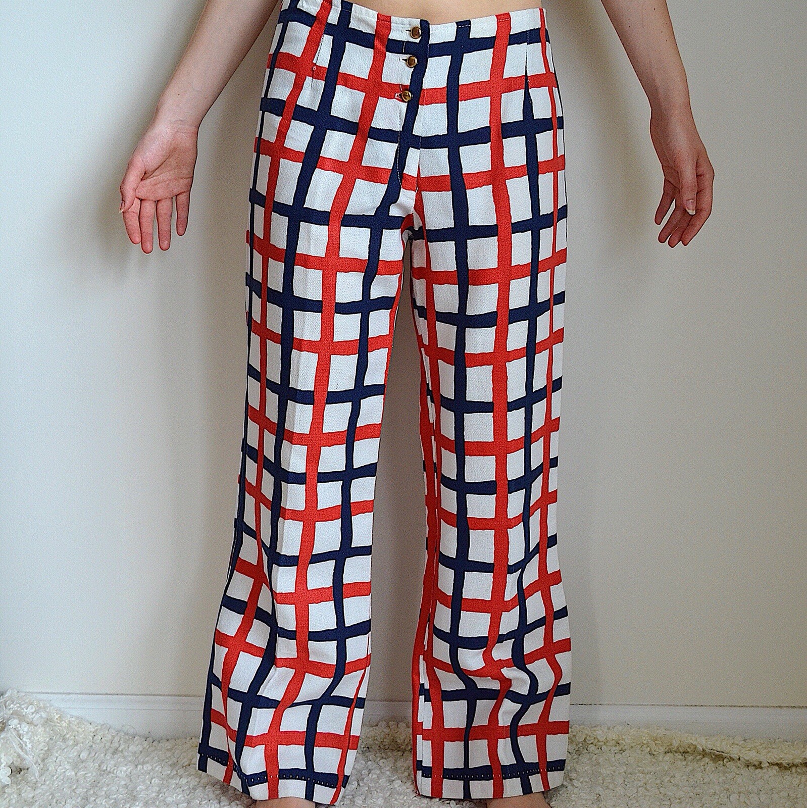 Vintage 1970s Hand Painted Checkered Pants