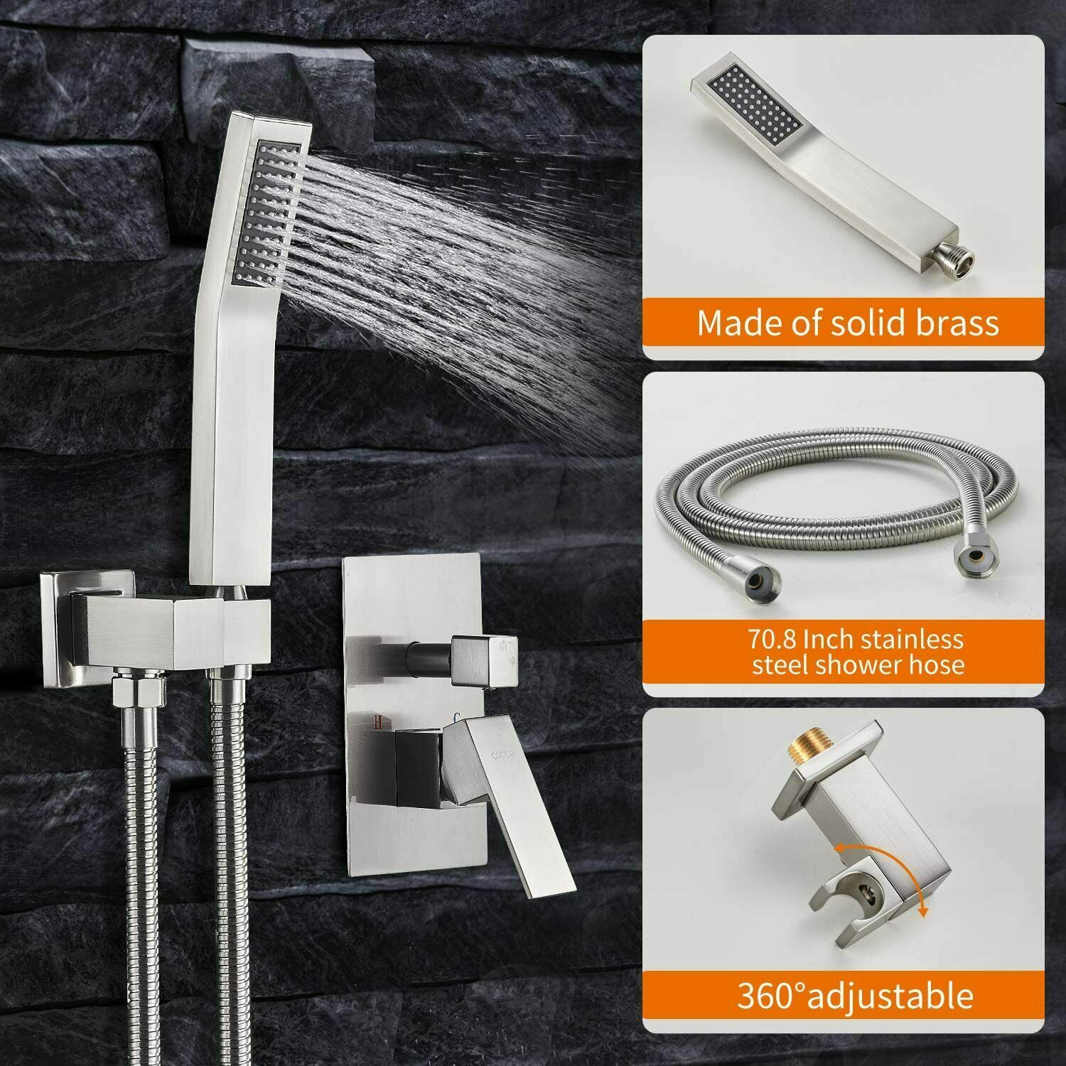 8'' Rainfall Shower Head Brushed Nickel Shower Faucet Combo Set with Mixer Valve