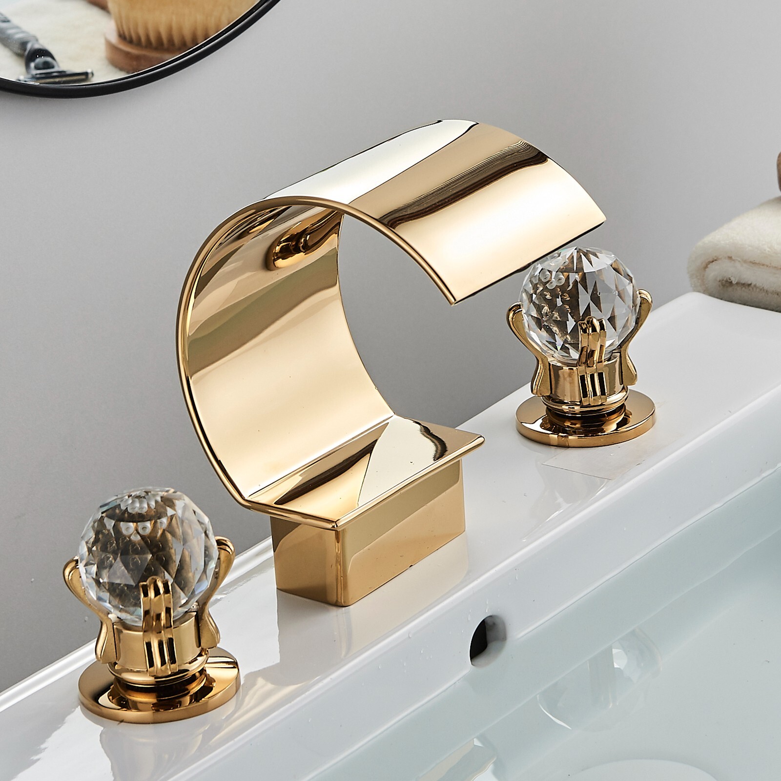 8 Widespread Waterfall Bathroom Sink Faucet 2 Handle 3 Hole Basin Tap Gold